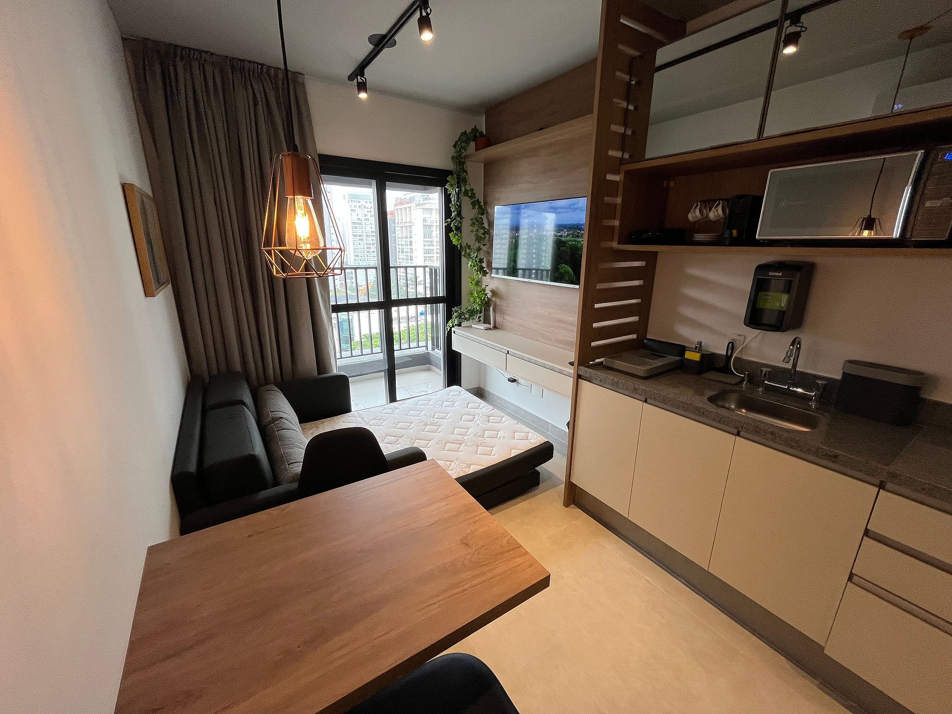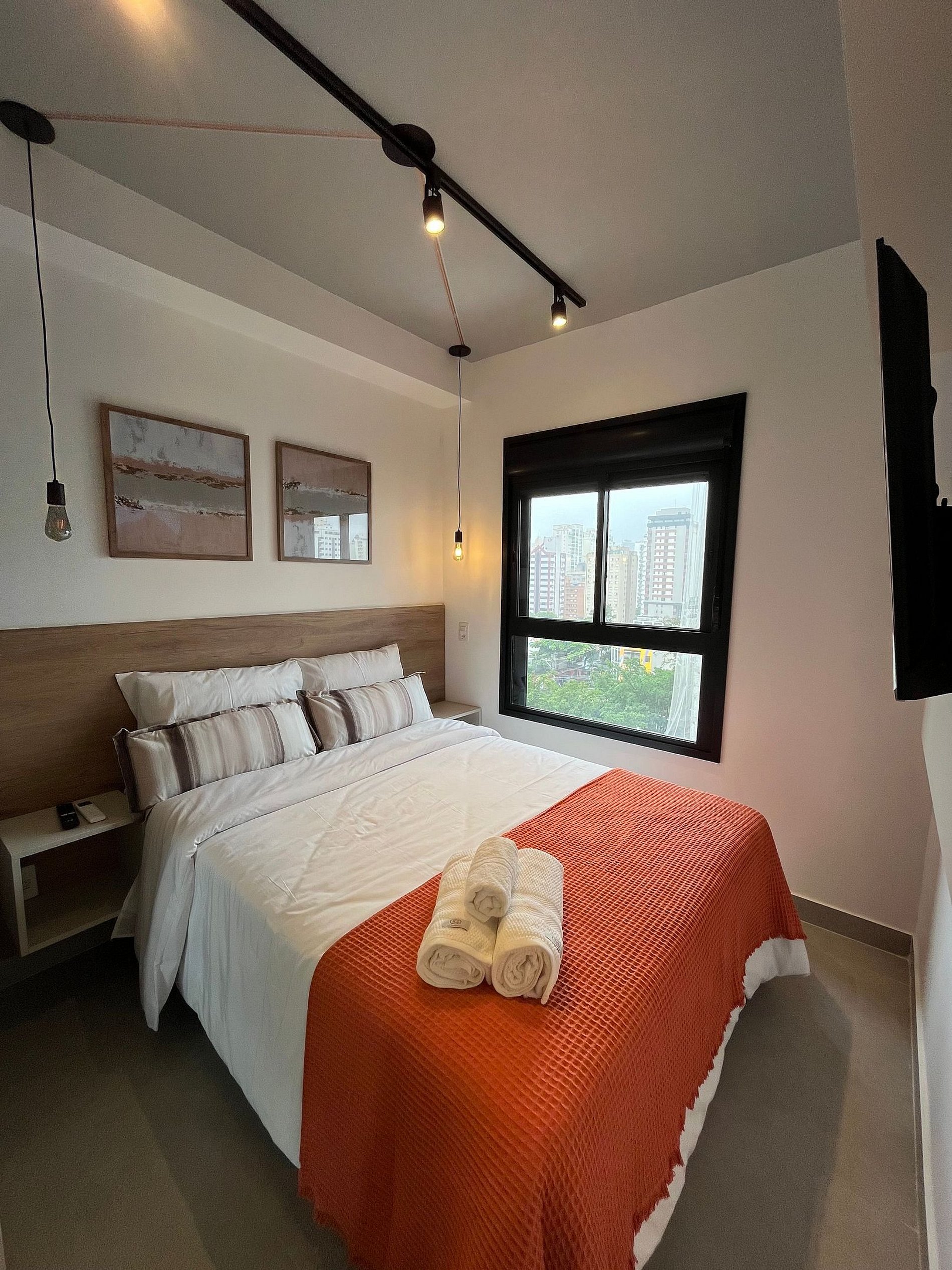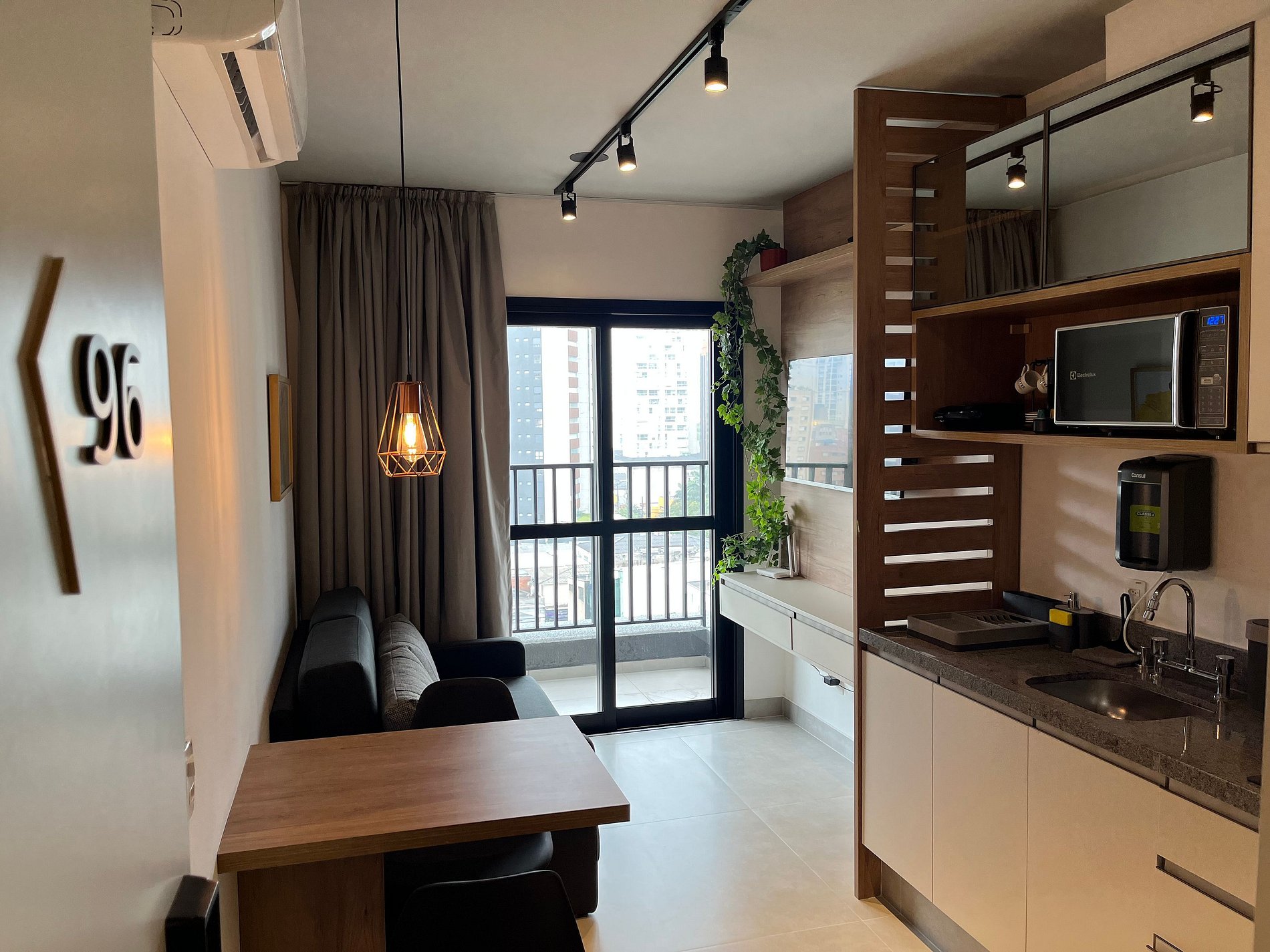 Apartamento 96 | 9° andar Moderno e bem localizado, este apartamento de 29 metros e 1 Dormitório está a poucos passos do Shopping Ibirapuera. Hospedando-se aqui você terá acesso aos principais pontos da Zona Sul de São Paulo: - Shopping Ibirapuera (1 Minuto andando) - Estação do Metrô Eucaliptos (5min andando) - Aeroporto de Congonhas (10min de carro) - Parque Ibirapuera (12min de carro) Próximos: Campo Belo/ Vila Olímpia / Indianópolis / Congonhas / Itaim Bibi