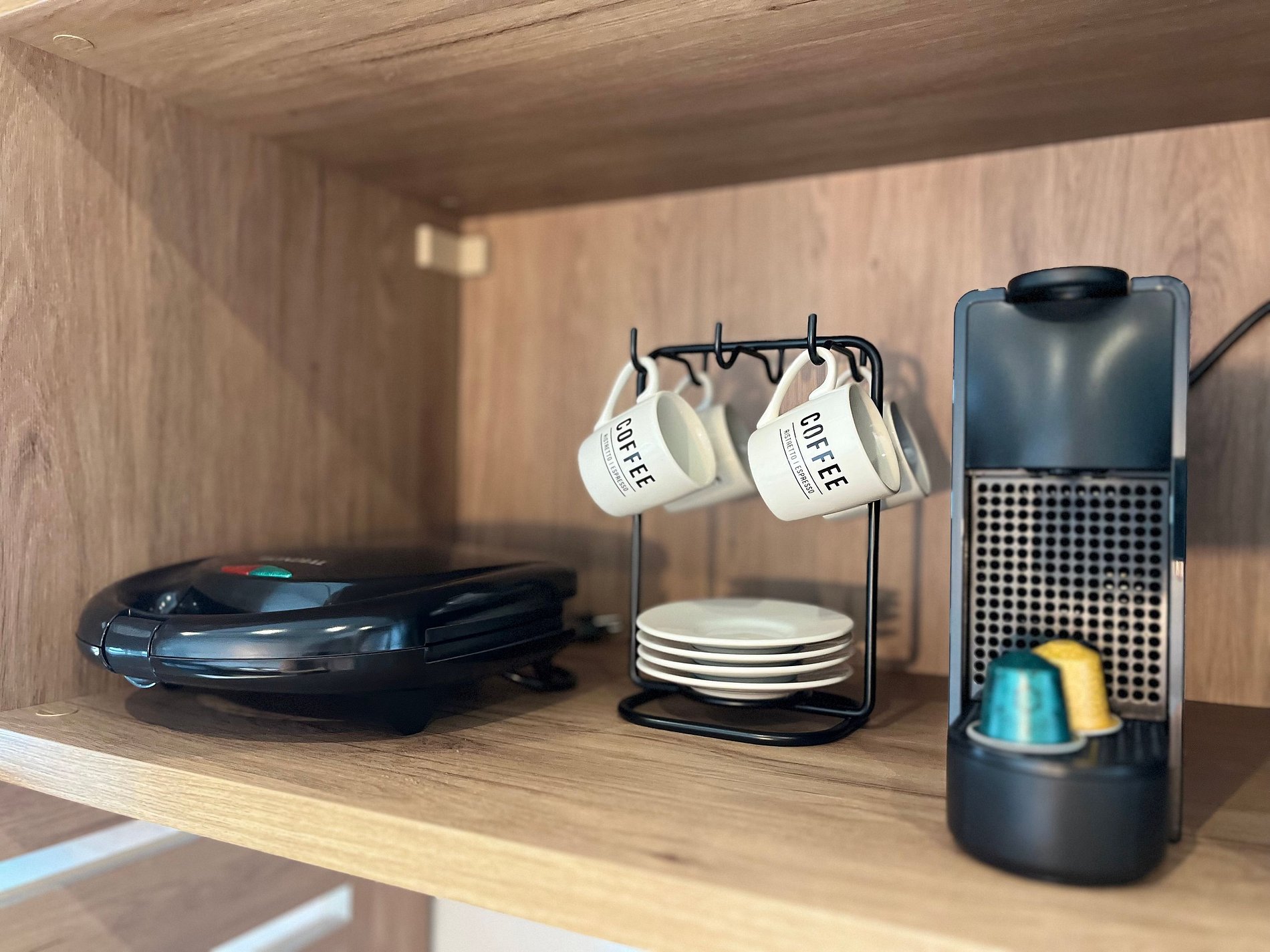 COZINHA - Fogao Cooktop de Indução 2 bocas - Microondas - Geladeira Frostfree com freezer - Purificador de água - Cafeteira Nespresso Essenza Mini (Leve suas cápsulas) - Sanduicheira - Liquidificador - Utensílios de cozinha e jantar
