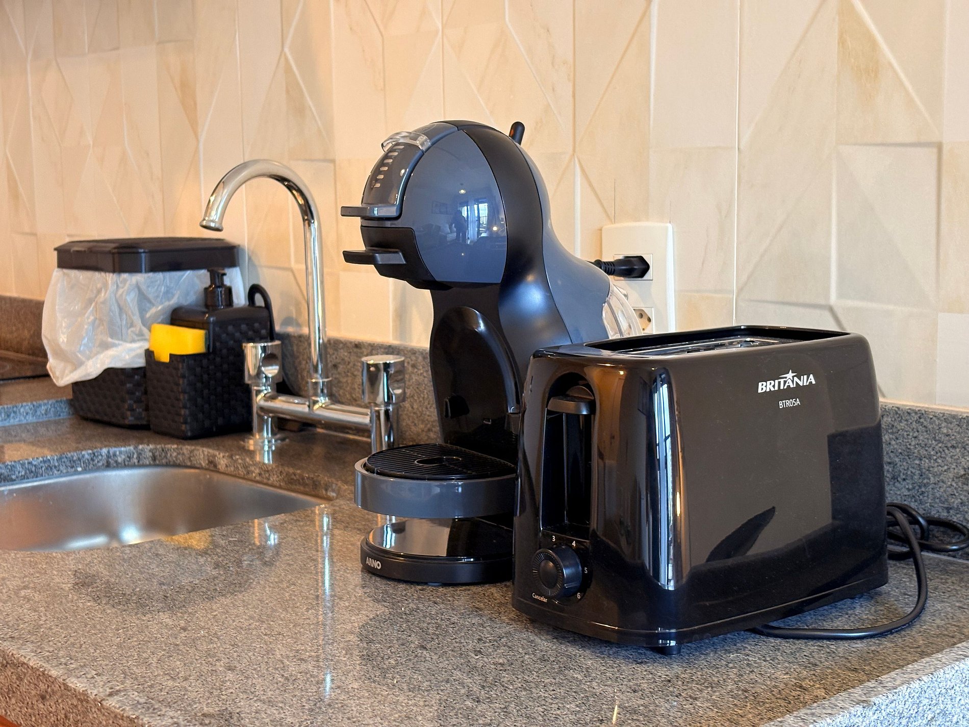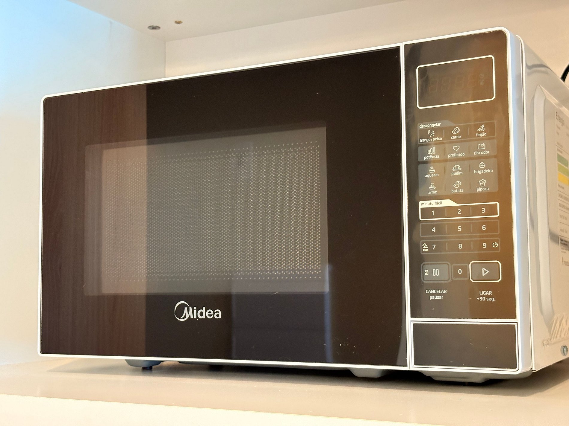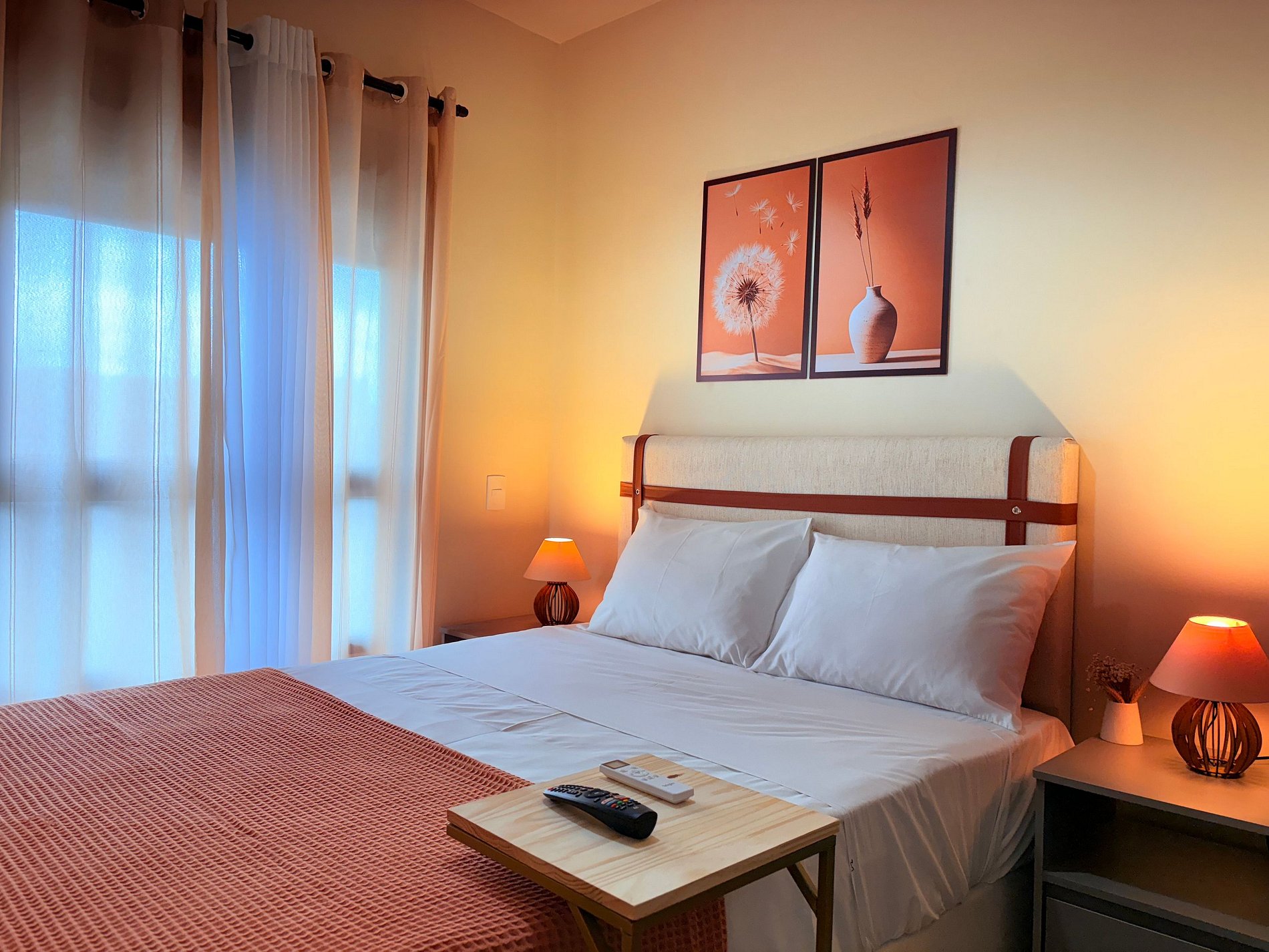 QUARTO - Cama Casal (1,38cmx 1,88cm) - 1x Jogo de cama e edredom ou manta- Guarda-roupa com cabides - Ar condicionado- Smart TV 43 polegadas - Internet de alta velocidade - Ferro de passar roupa - Persiana com sistema 100% Black-out SALA - Sofá (2 Lugares) - TV Smart- Mesa de Jantar COZINHA - Fogao Cooktop de Indução 2 bocas - Microondas - Geladeira Frostfree com freezer - Utensílios de cozinha e jantar BANHEIRO - Ducha Quente e Fria - Secador de Cabelo -2 Toalhas de Banho / 1 de Rosto