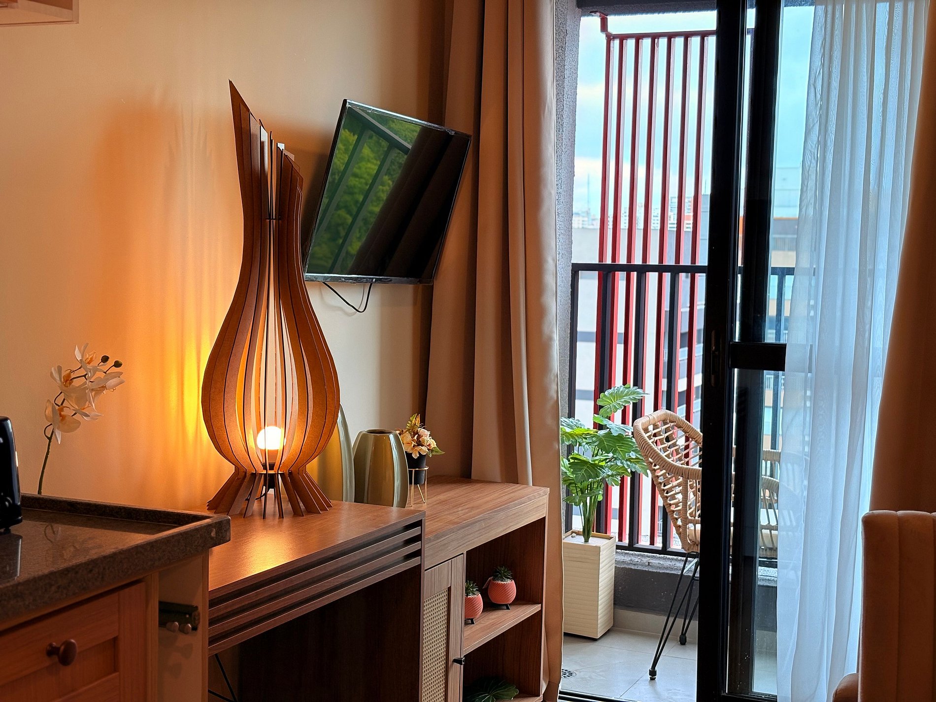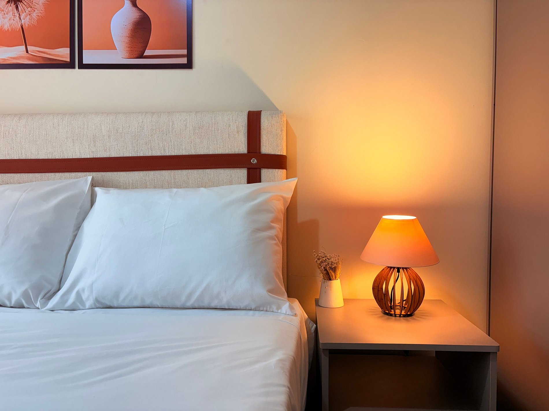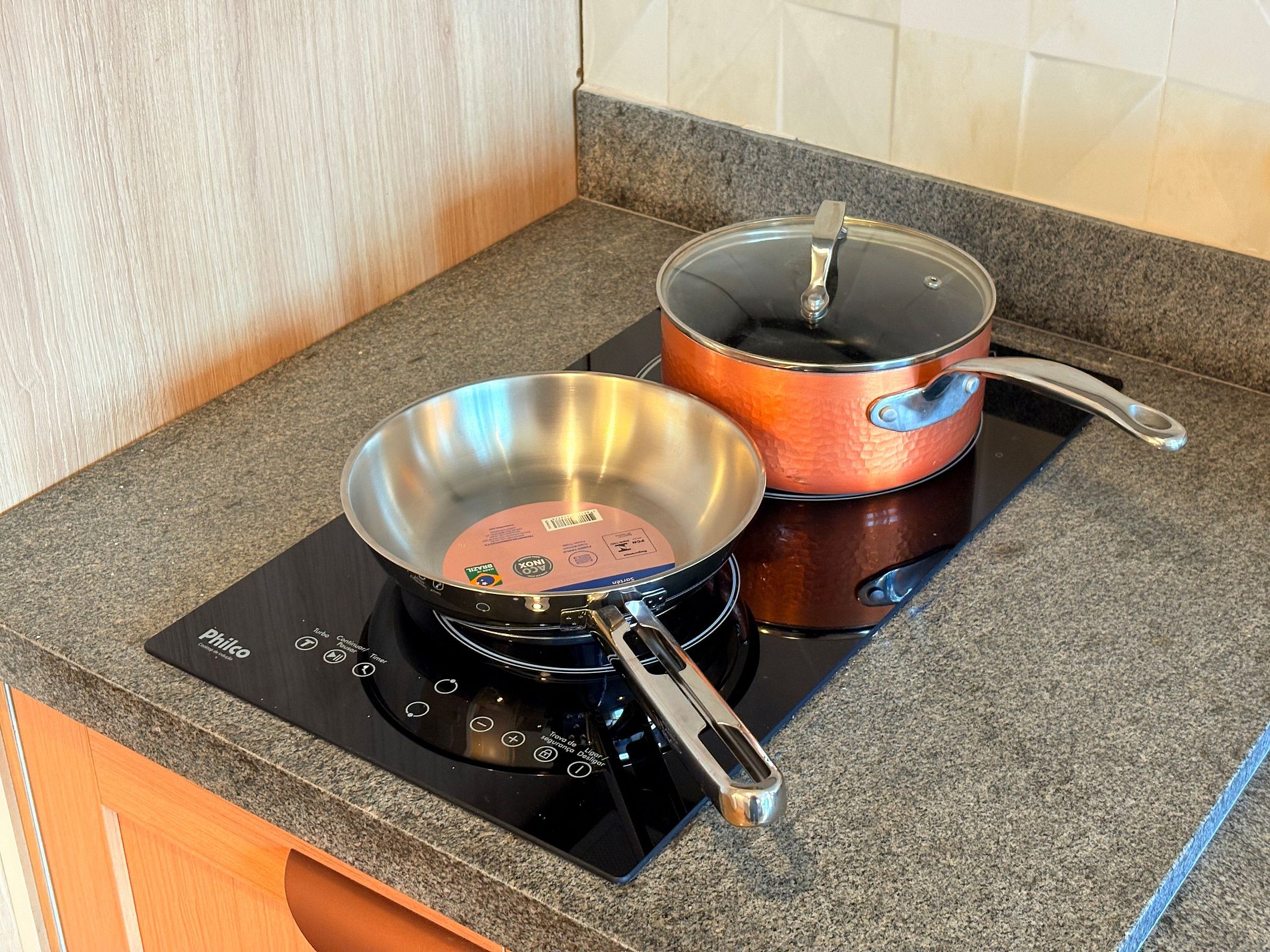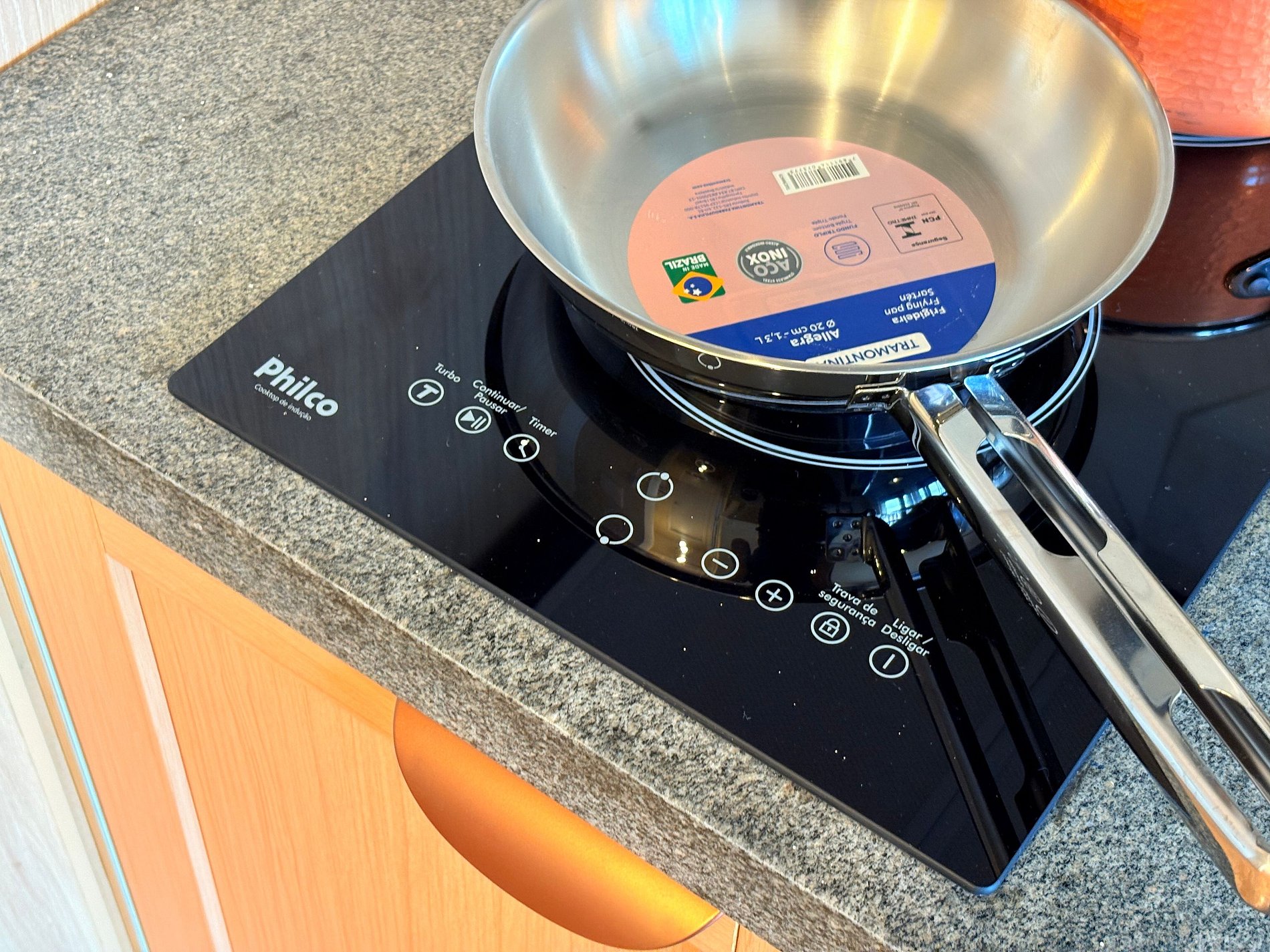 QUARTO - Cama Casal (1,38cmx 1,88cm) - 1x Jogo de cama e edredom ou manta- Guarda-roupa com cabides - Ar condicionado- Smart TV 43 polegadas - Internet de alta velocidade - Ferro de passar roupa - Persiana com sistema 100% Black-out SALA - Sofá (2 Lugares) - TV Smart- Mesa de Jantar COZINHA - Fogao Cooktop de Indução 2 bocas - Microondas - Geladeira Frostfree com freezer - Utensílios de cozinha e jantar BANHEIRO - Ducha Quente e Fria - Secador de Cabelo -2 Toalhas de Banho / 1 de Rosto
