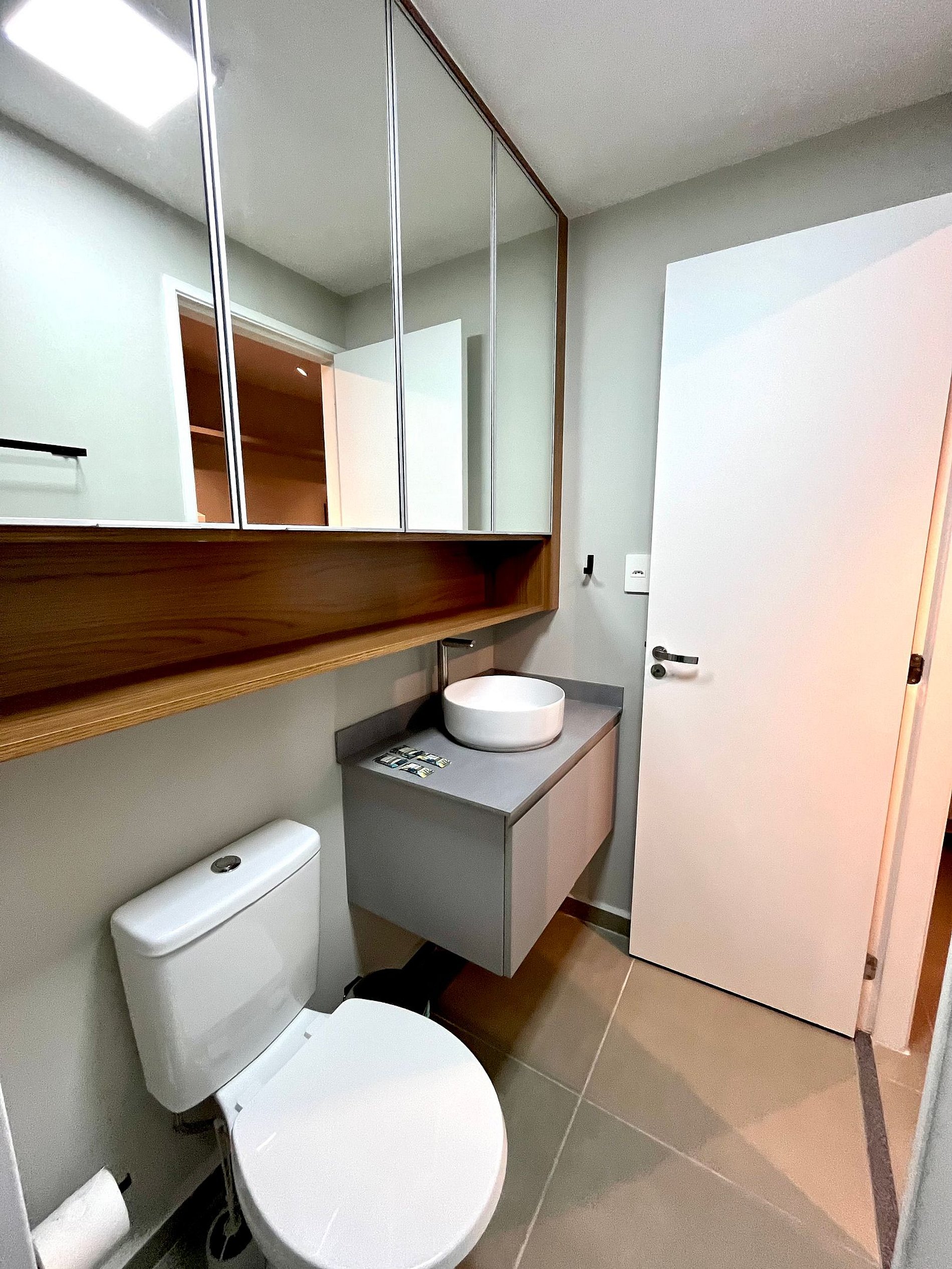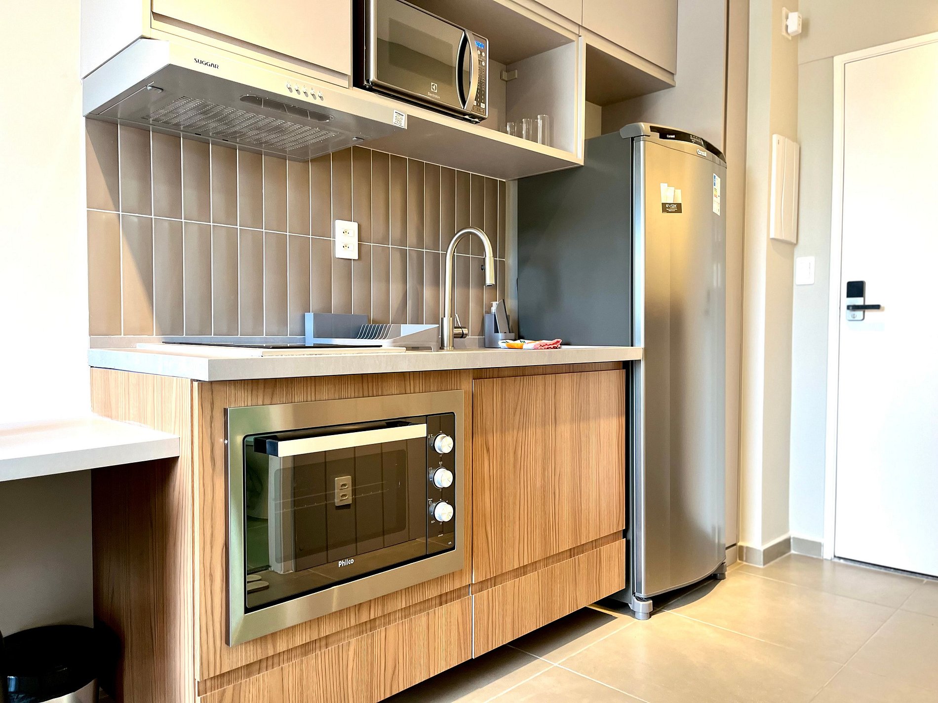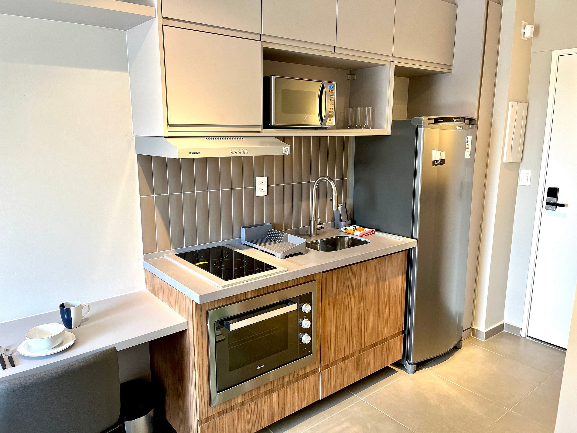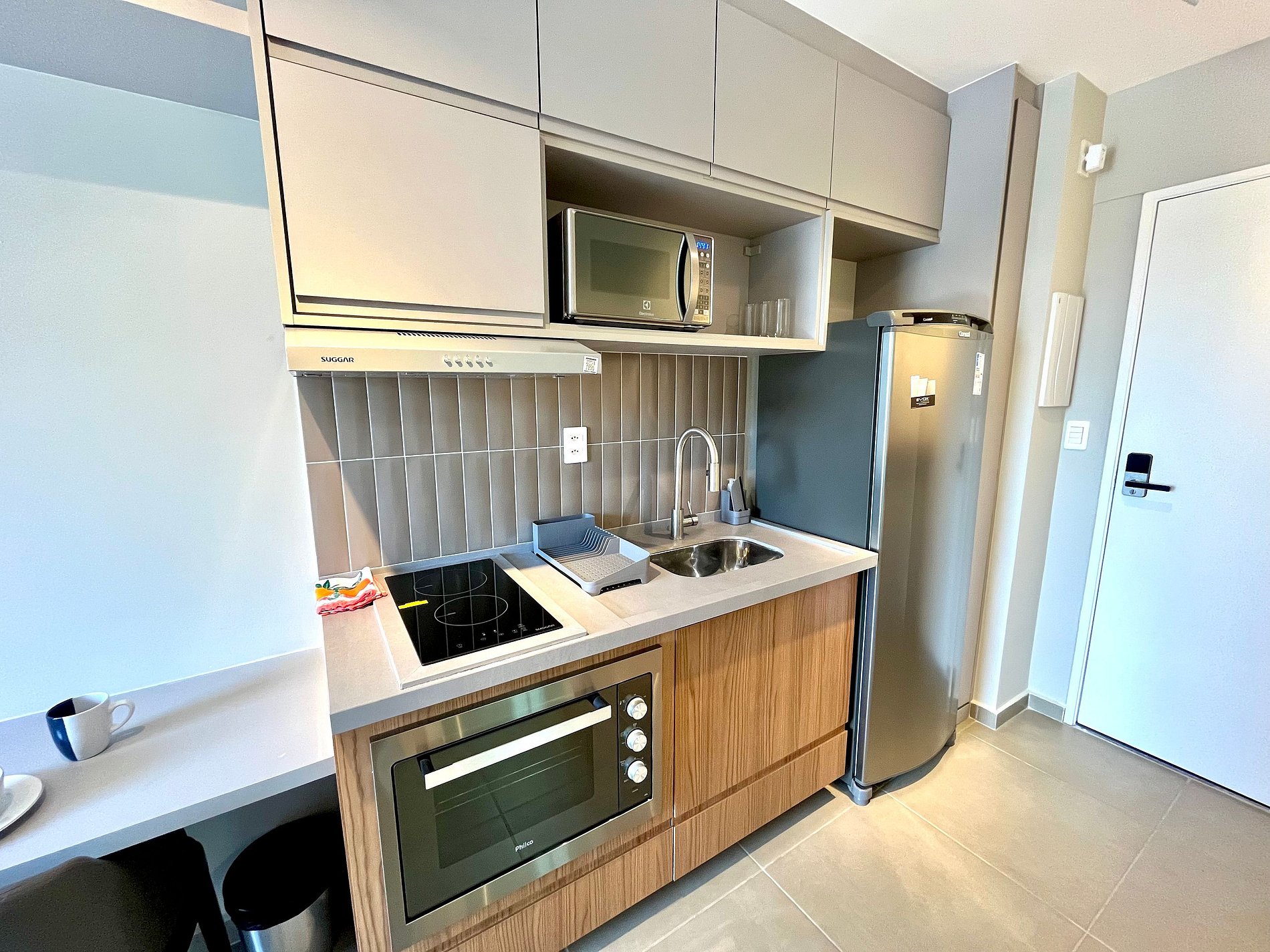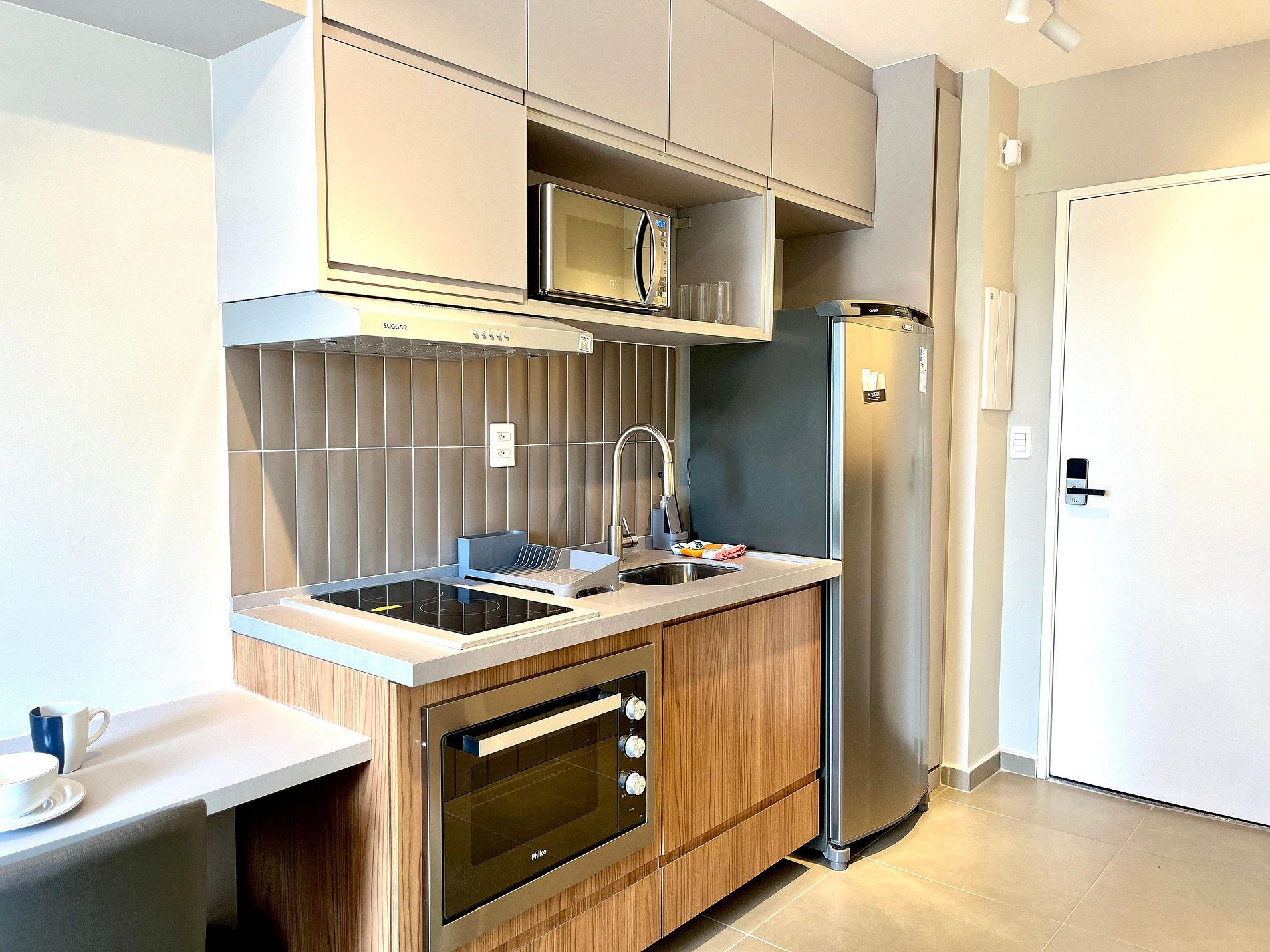 O acesso ao apartamento é feito de forma prática e segura através de uma fechadura inteligente.