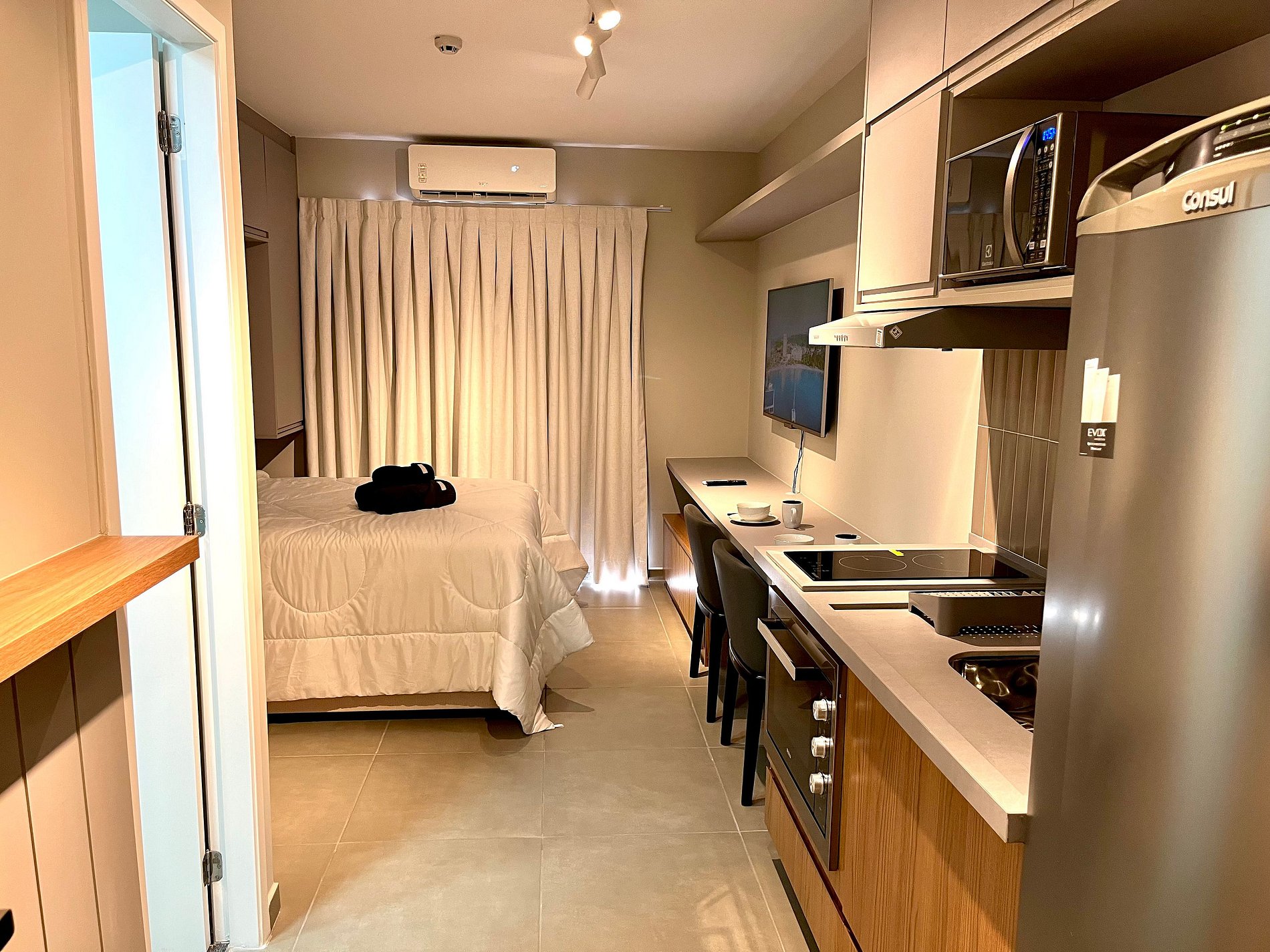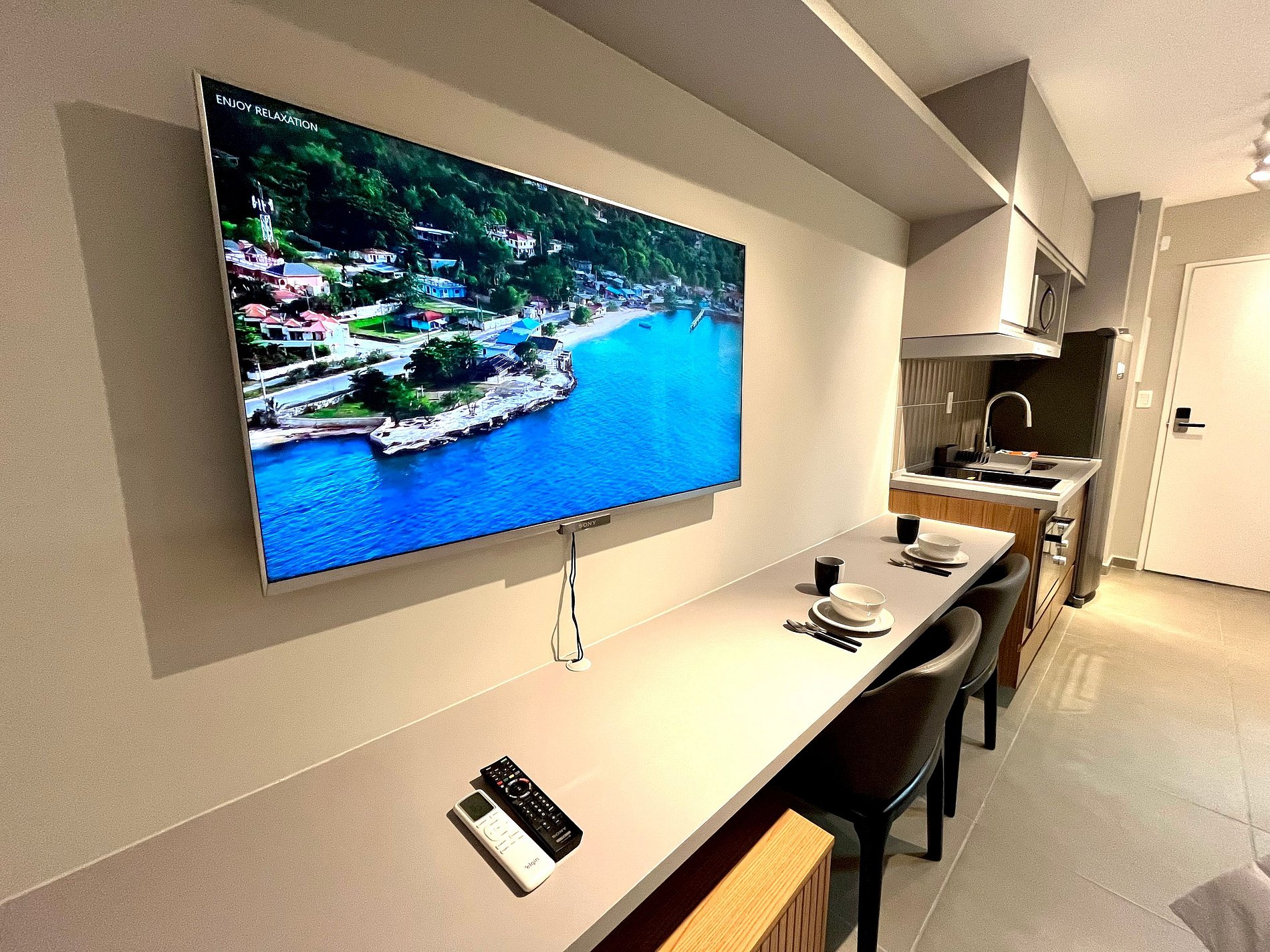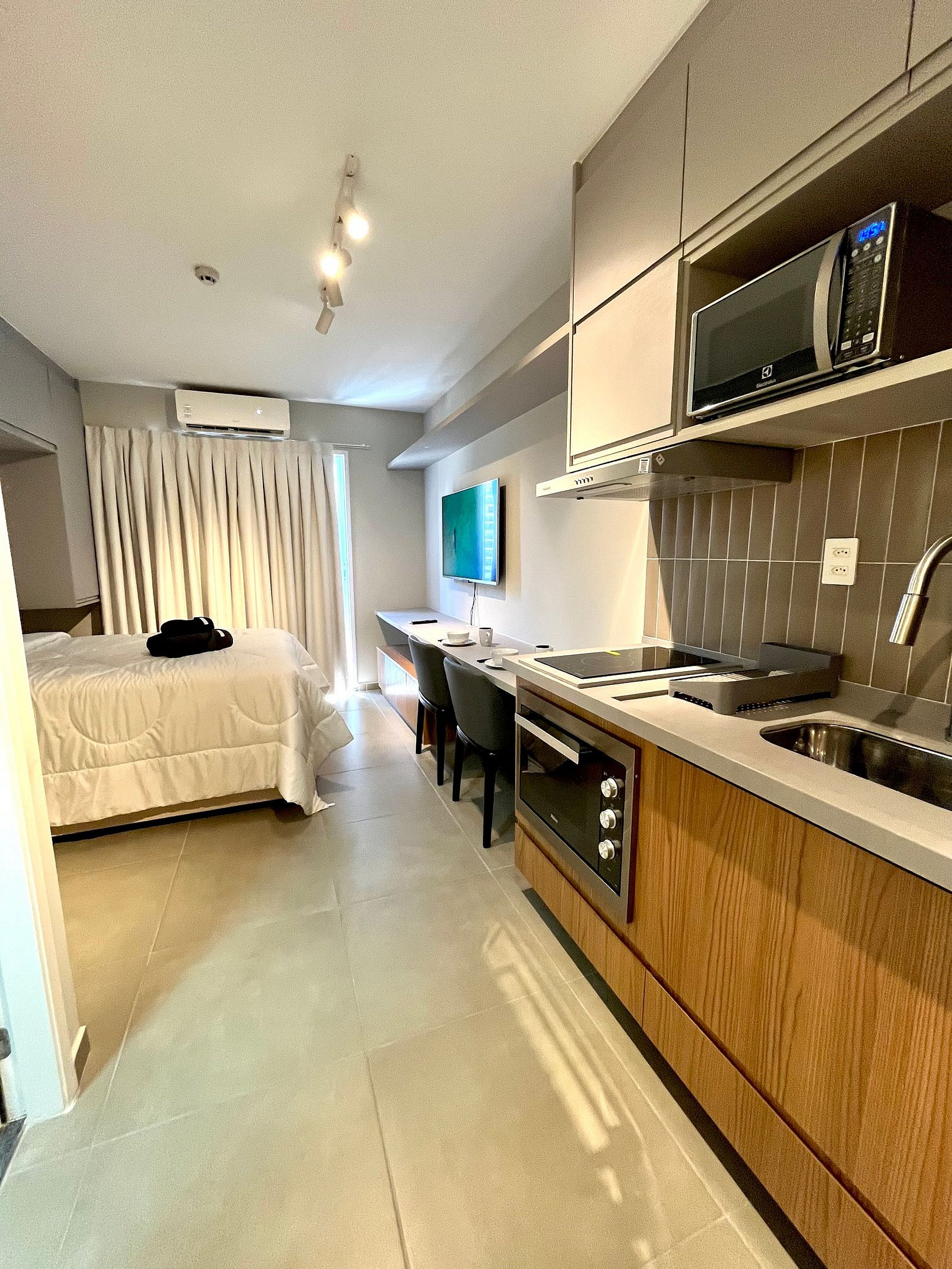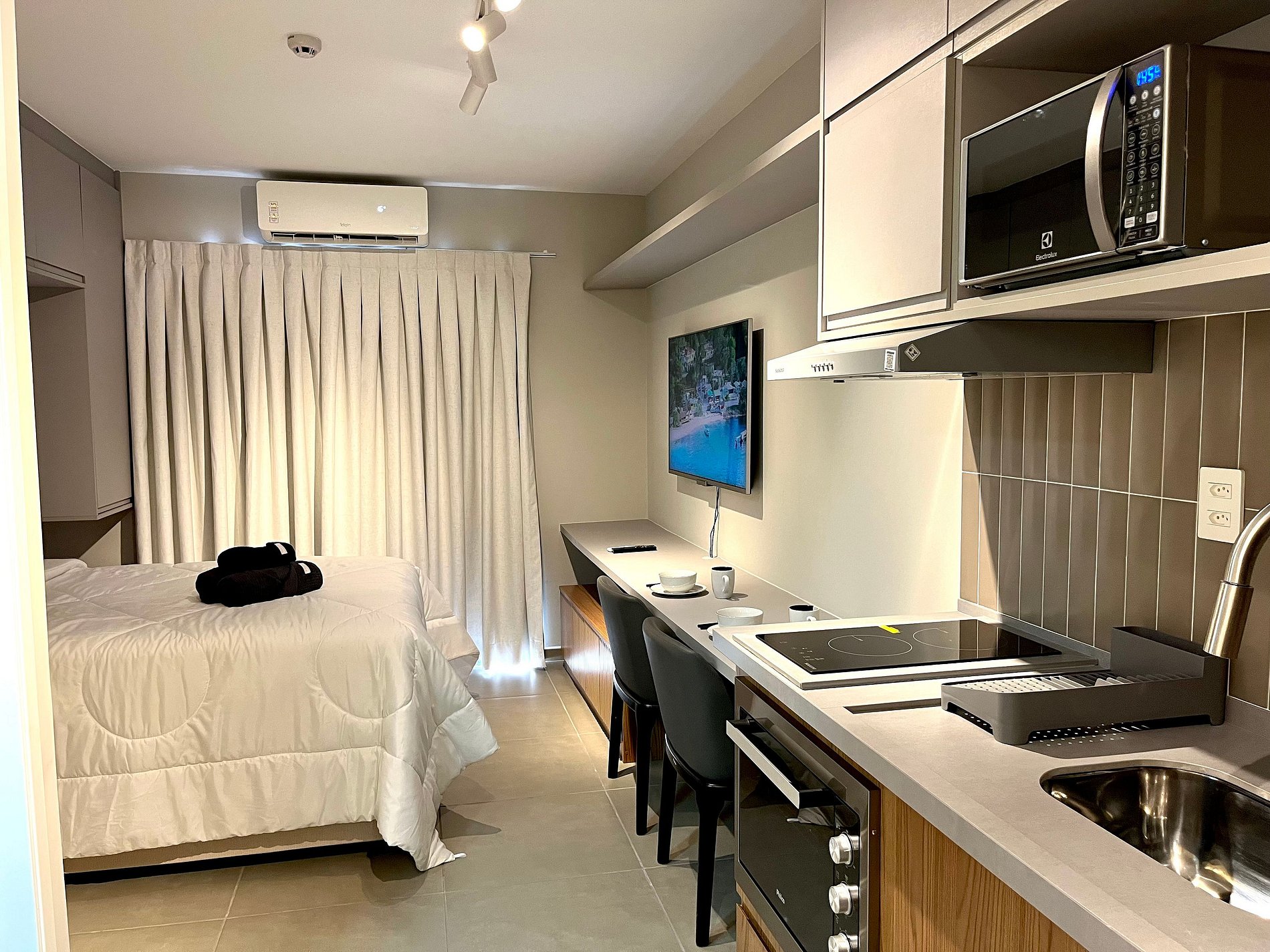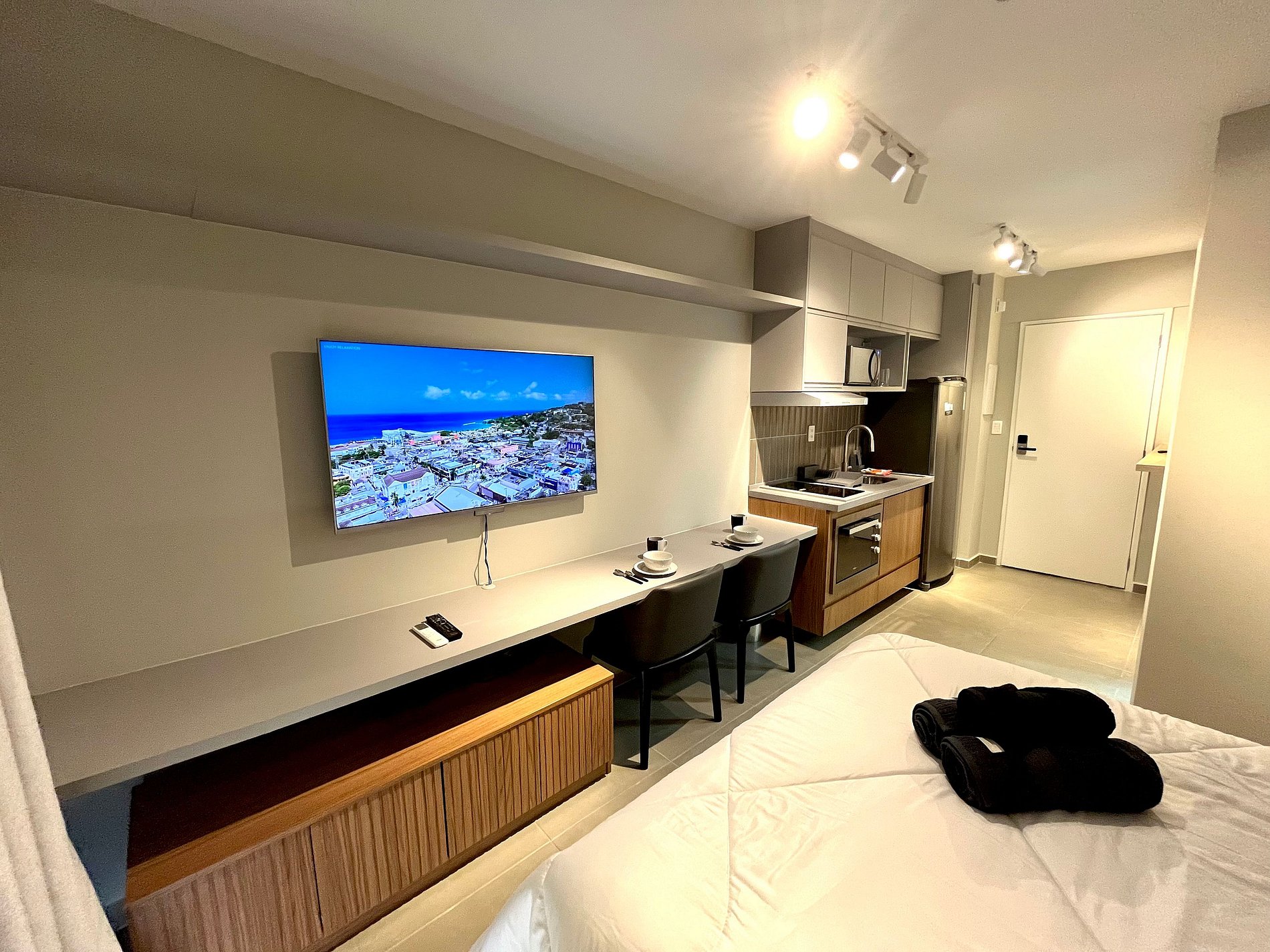 Atenção: A Tv disponibilizada para este apartamento é de um padrão mais antigo. Funciona tranquilamente para os canais abertos (Globo/ SBT e demais), mas não funciona para Netflix / Amazon / YouTube. e etc.