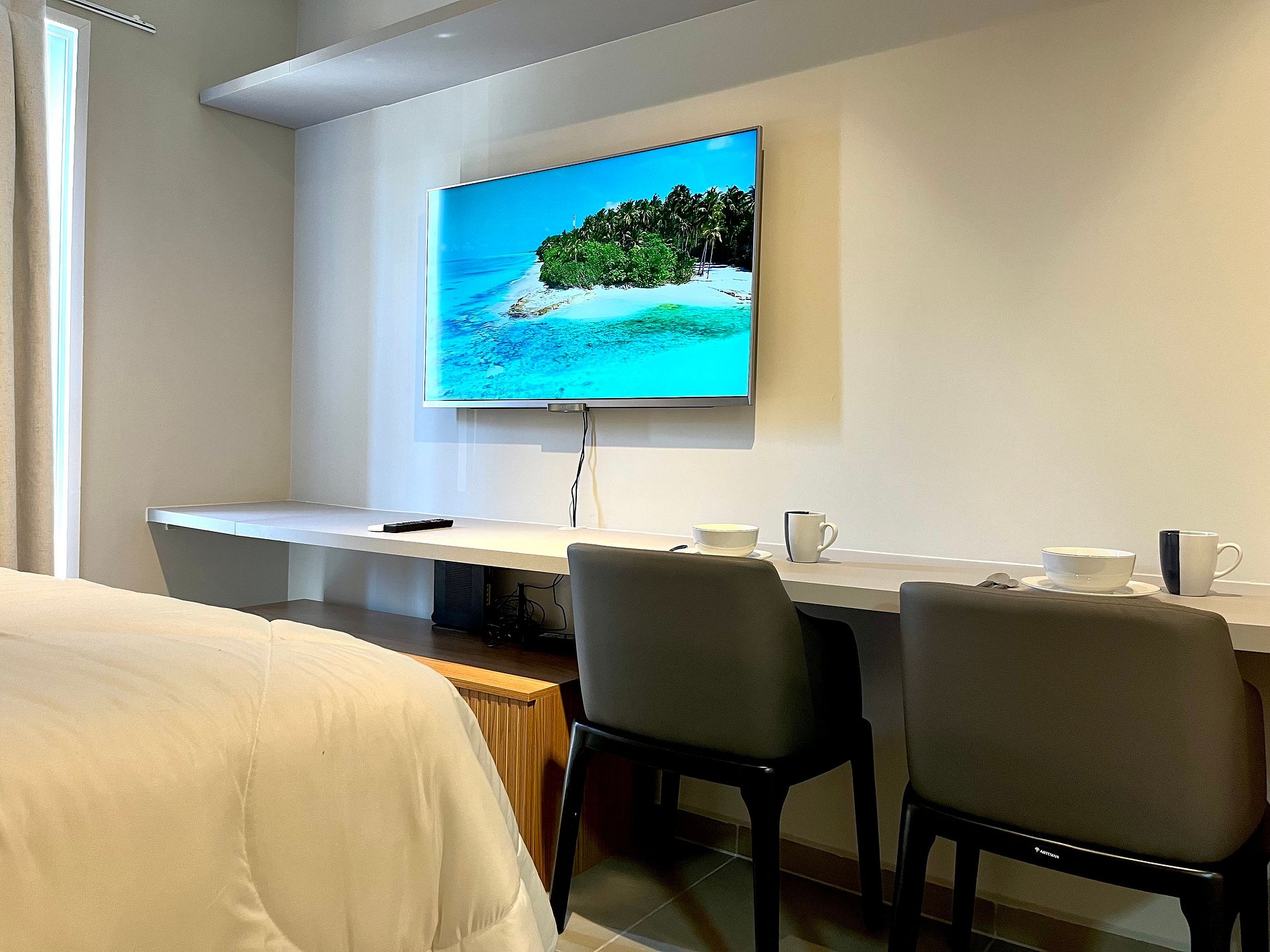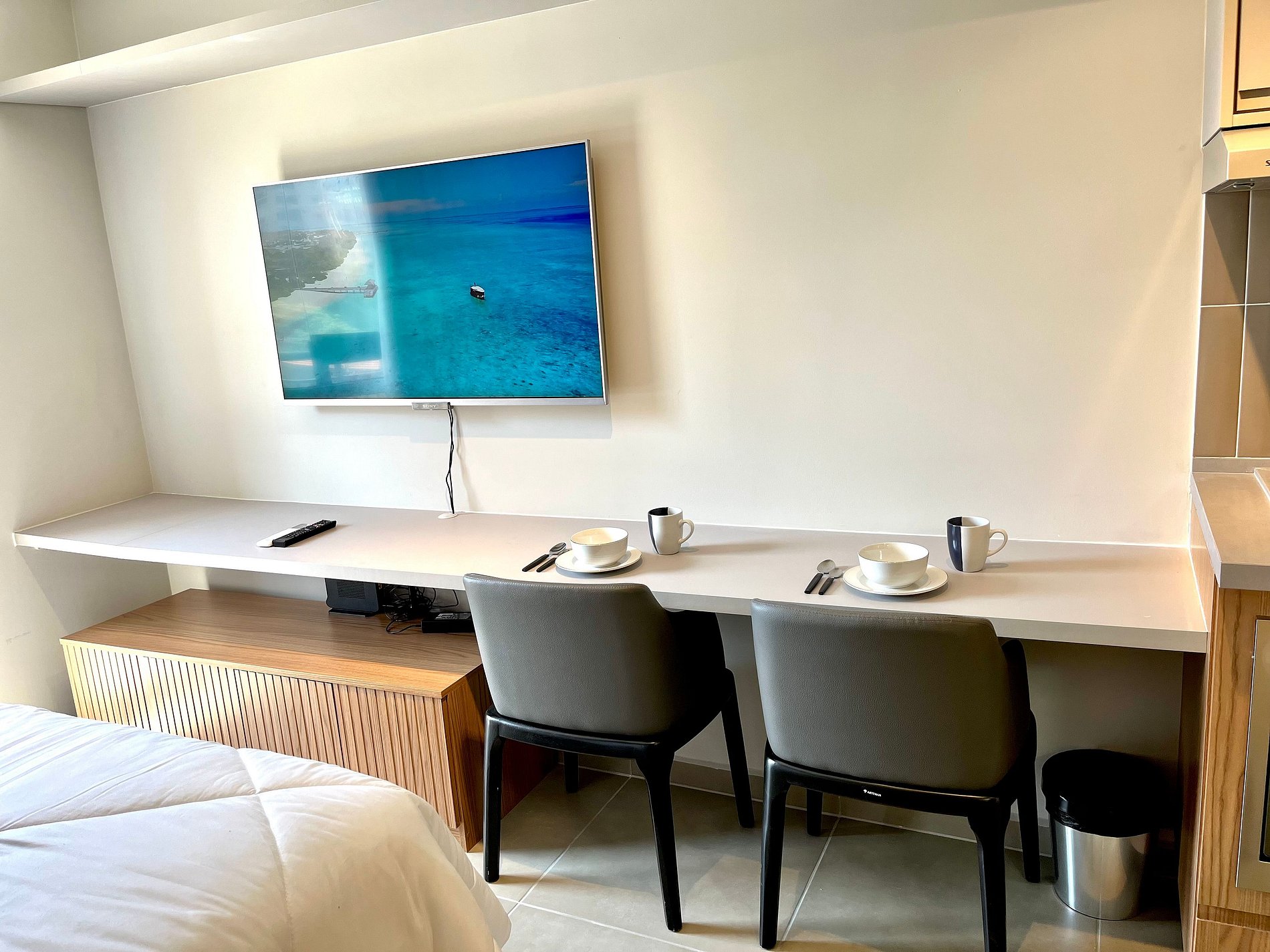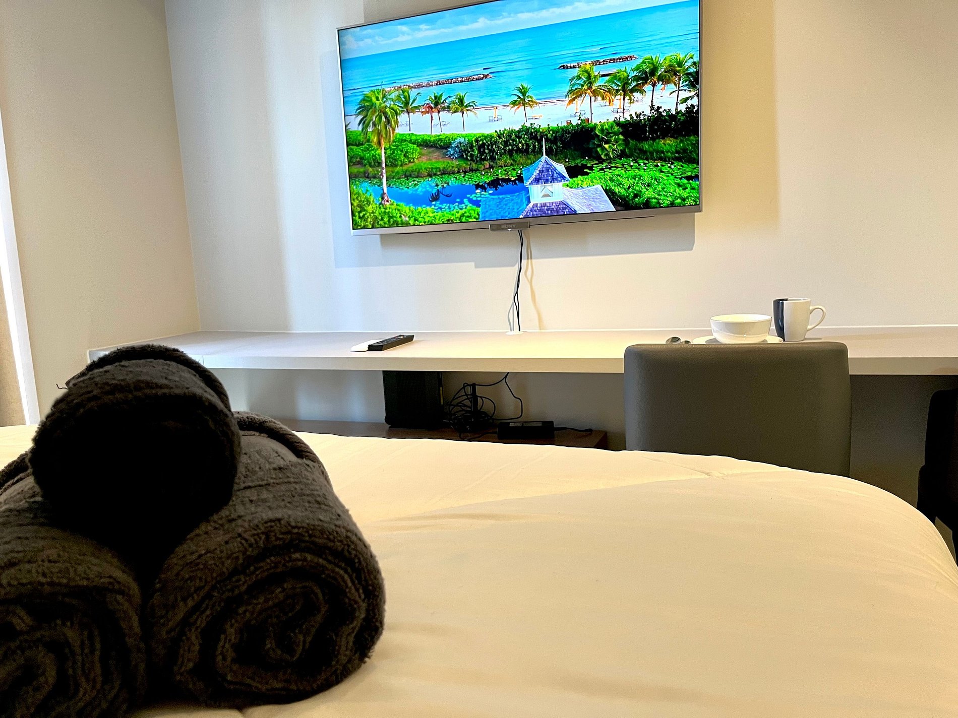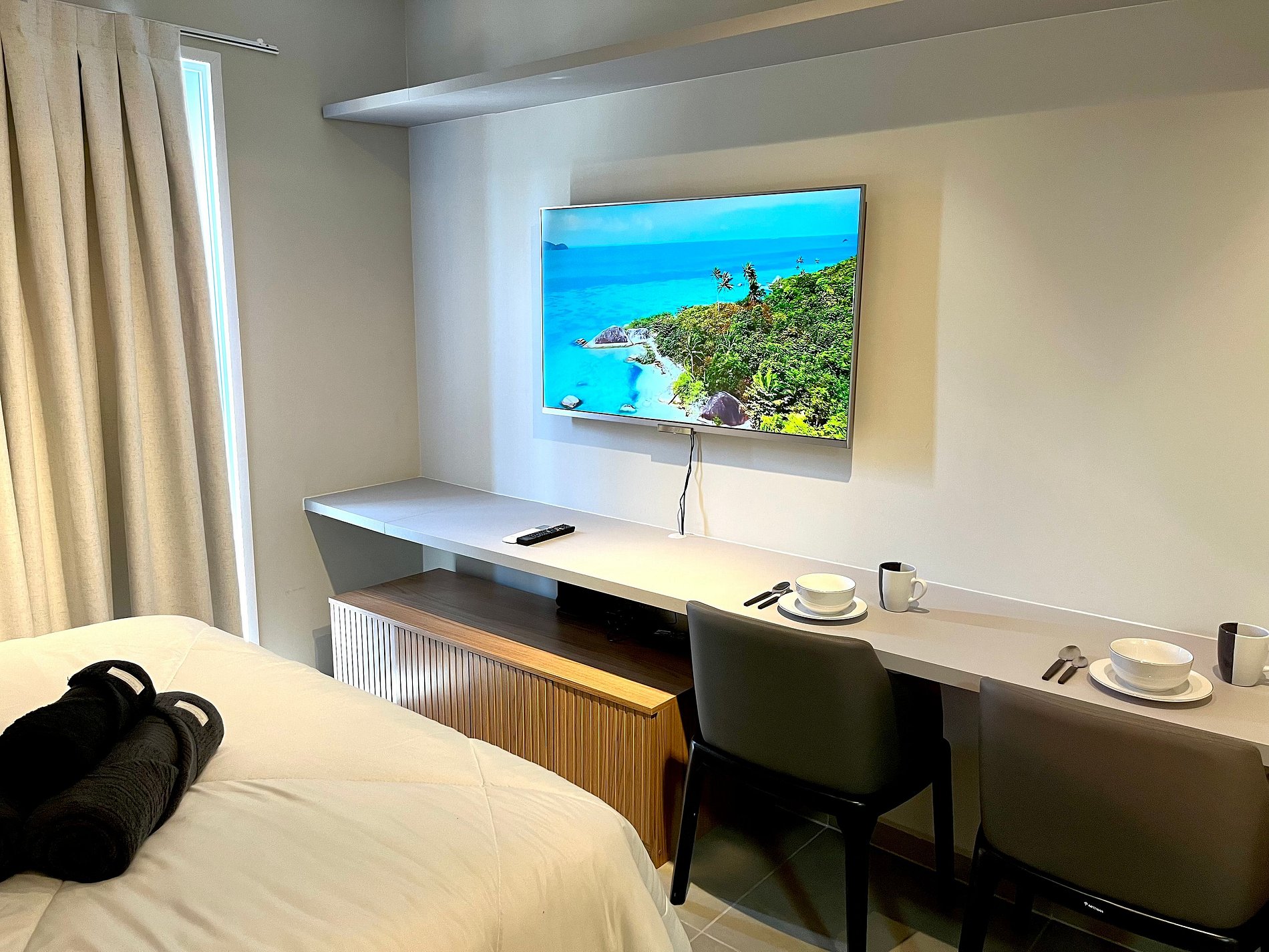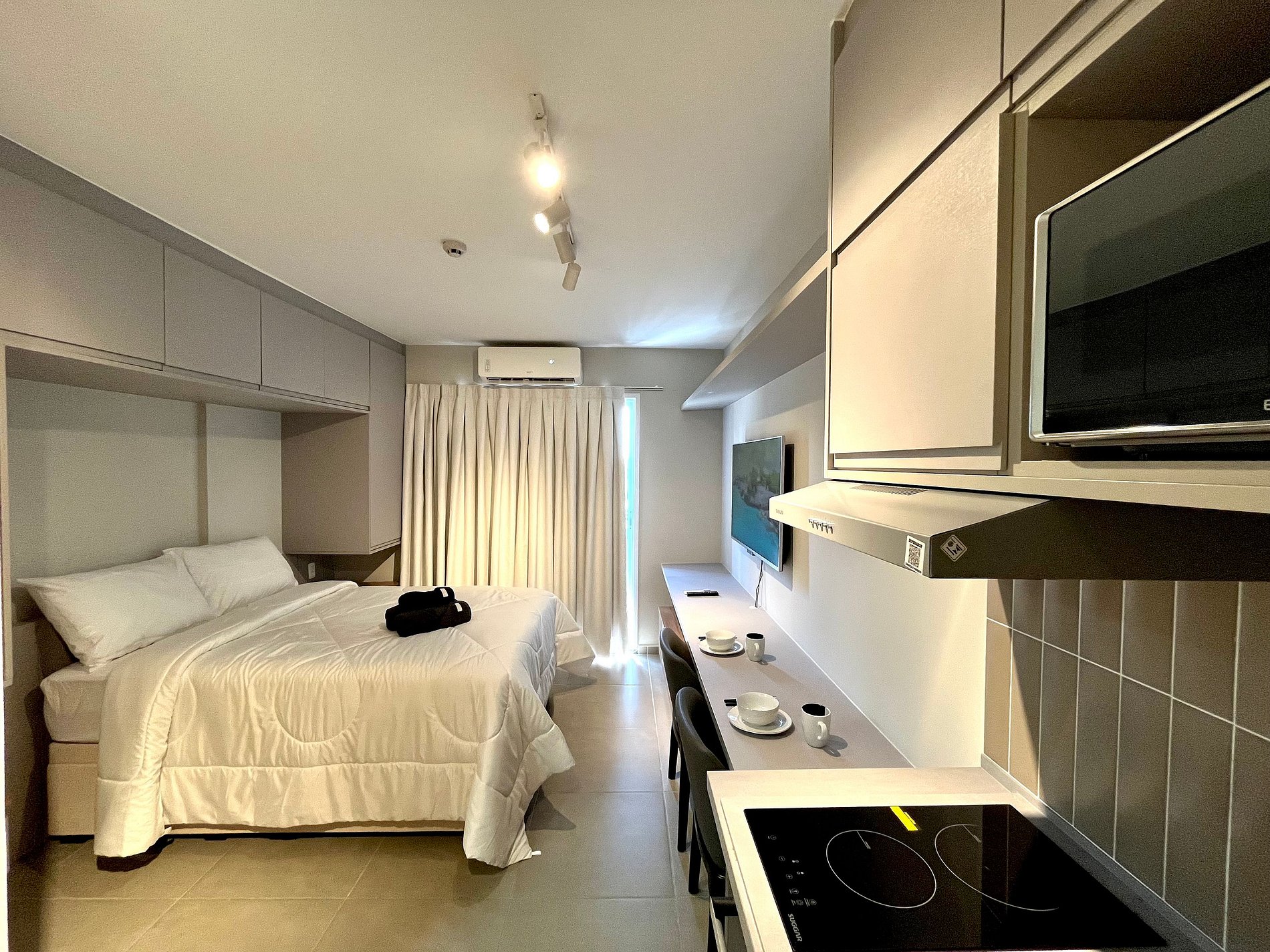 Atenção: A Tv disponibilizada para este apartamento é de um padrão mais antigo. Funciona tranquilamente para os canais abertos (Globo/ SBT e demais), mas não funciona para Netflix / Amazon / YouTube. e etc.