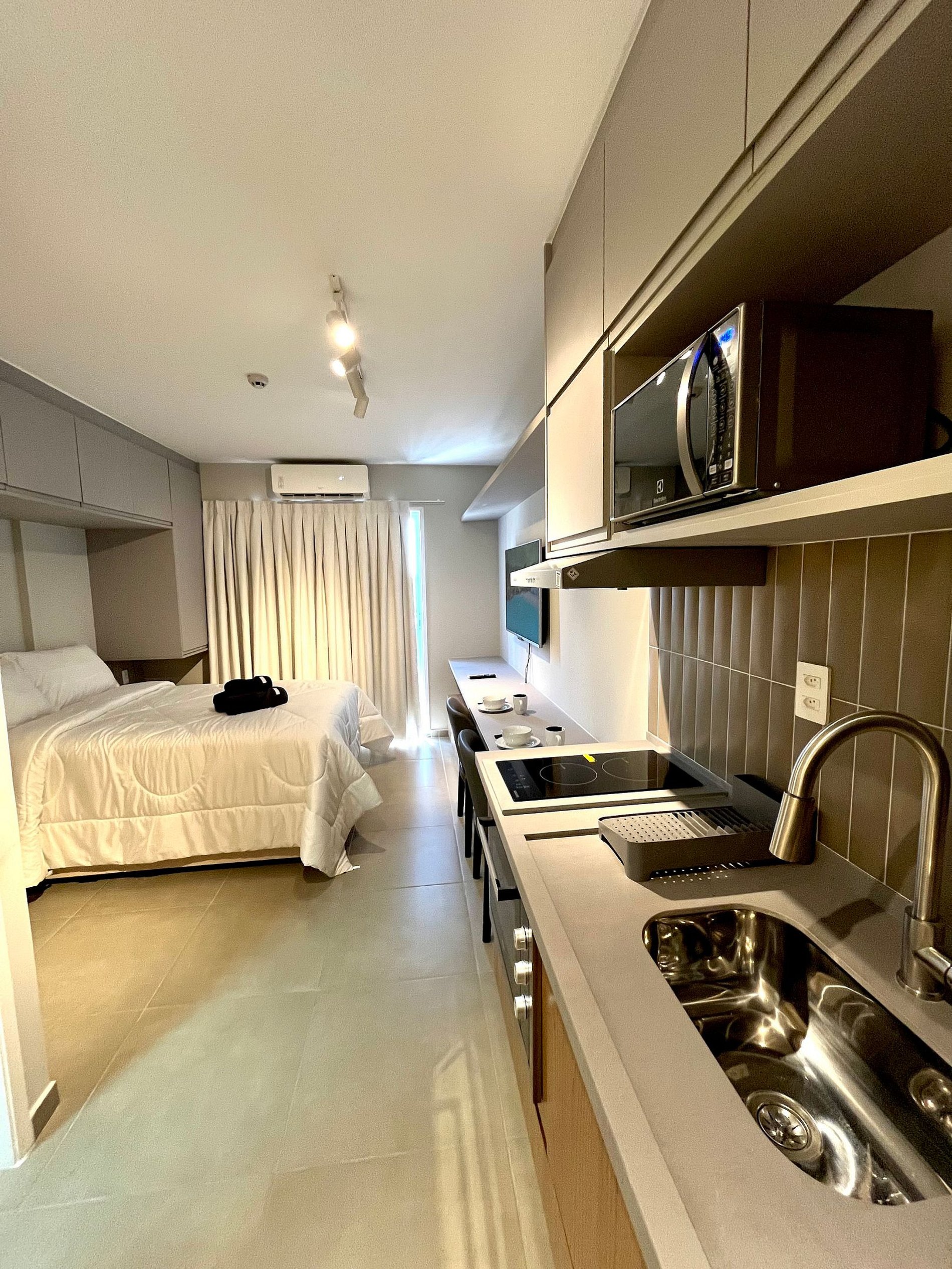 Informações Importantes Nossas tomadas são 110v. É permitida, de forma gratuita, a hospedagem de crianças menores de 4 anos, desde que durmam na mesma cama dos pais. (Acidentes acontecem, porém, caso ocorra xixi na cama, vômito ou qualquer sujeira em colchões, roupas de cama ou partes estofadas, será necessária a cobrança de taxa de higienização, conforme o serviço especializado.)Menores de 18 anos serão liberados somente mediante autorização dos pais ou responsáveis legais, conforme a Lei nº 8.069, de 13/07/1990. Não trabalhamos com cama extra e/ou berço. O prédio não possui estacionamento. Não é permitido fumar dentro do studio. Esta unidade não aceita pets (animais de estimação). Dúvidas Frequentes Qual a localização do studio? Rua Constantino de Sousa, 258 – Campo Belo. Preciso levar toalhas? Disponibilizamos 2 toalhas de banho e 1 toalha de rosto, independentemente do período da hospedagem. Preciso cancelar ou alterar a reserva. É possível? Nestes casos, seguimos a política de cancelamento estabelecida no anúncio e na plataforma. Posso fazer check-in antes das 15h ou check-out depois das 11h? Infelizmente, não. Os horários são estabelecidos para que possamos realizar a limpeza adequada entre as trocas de hóspedes, que ocorre diariamente entre 11h e 15h.