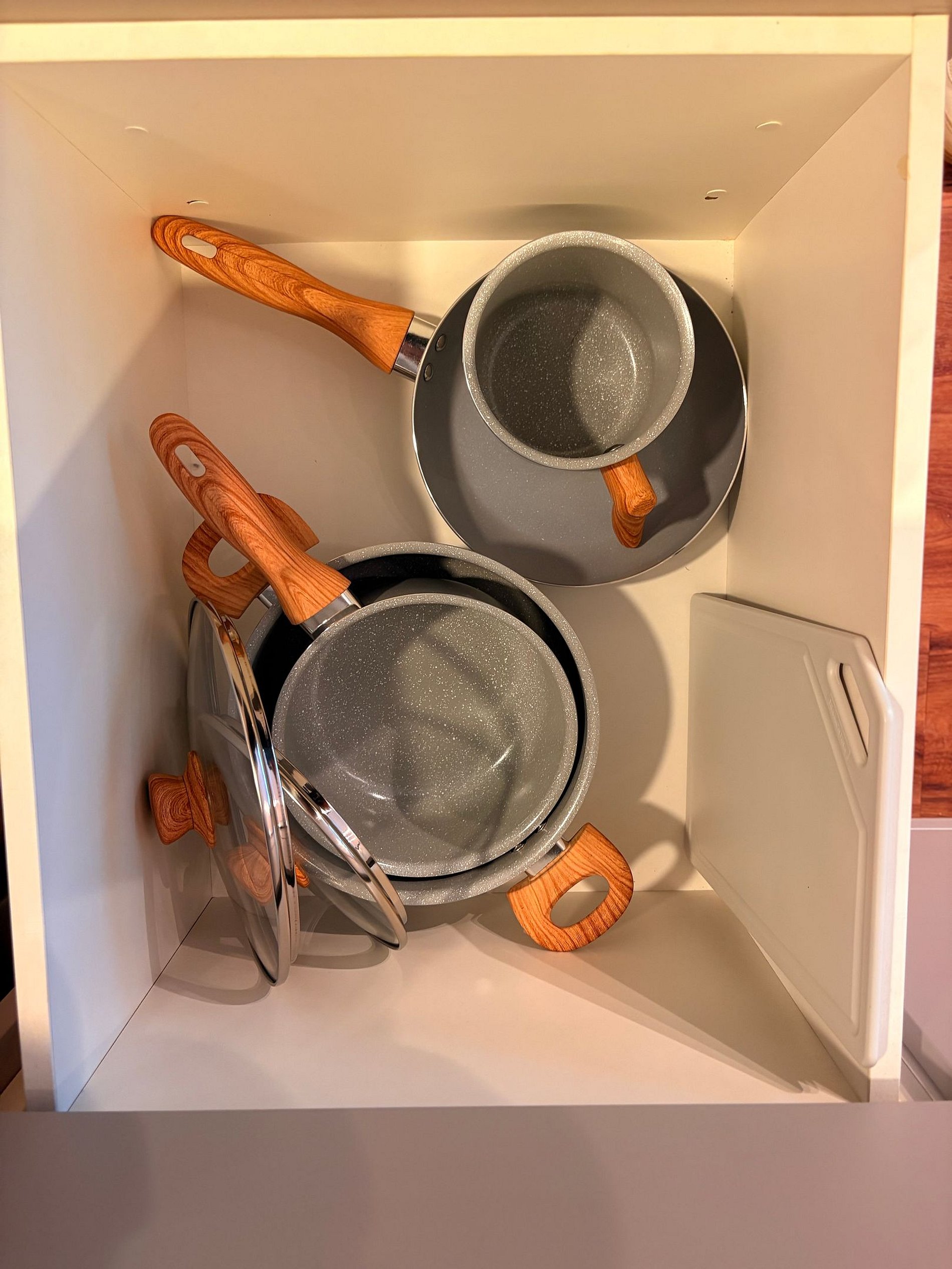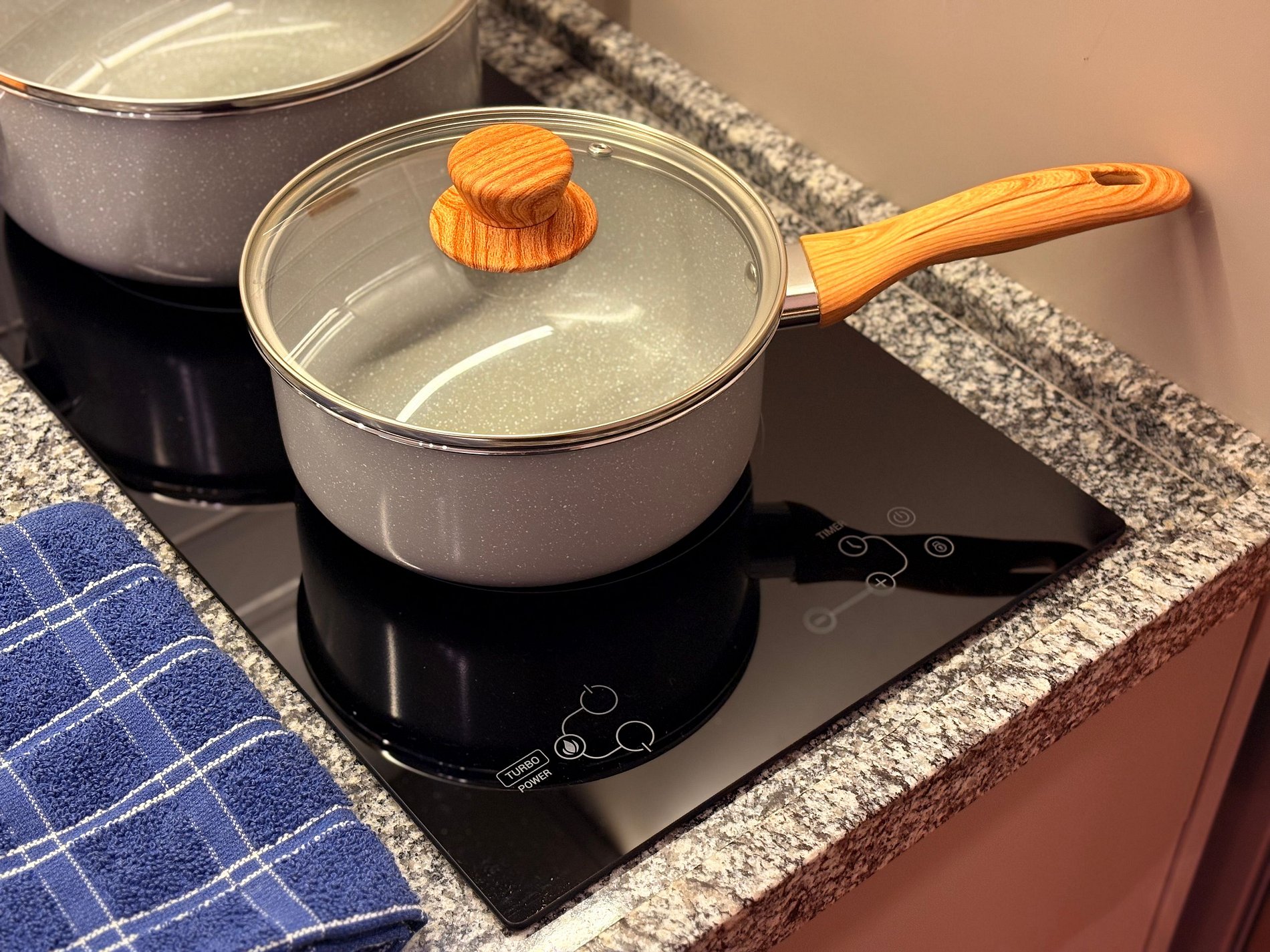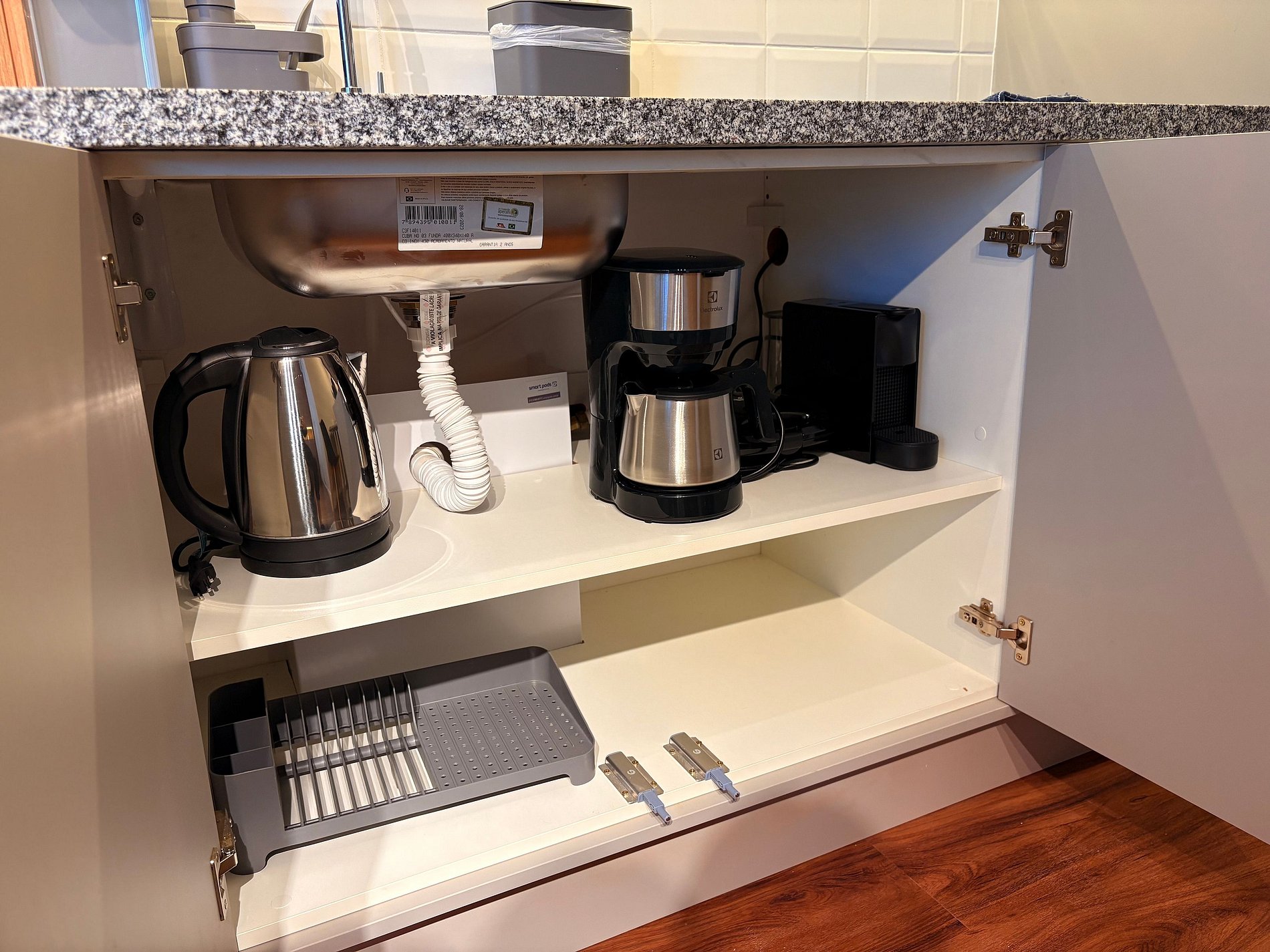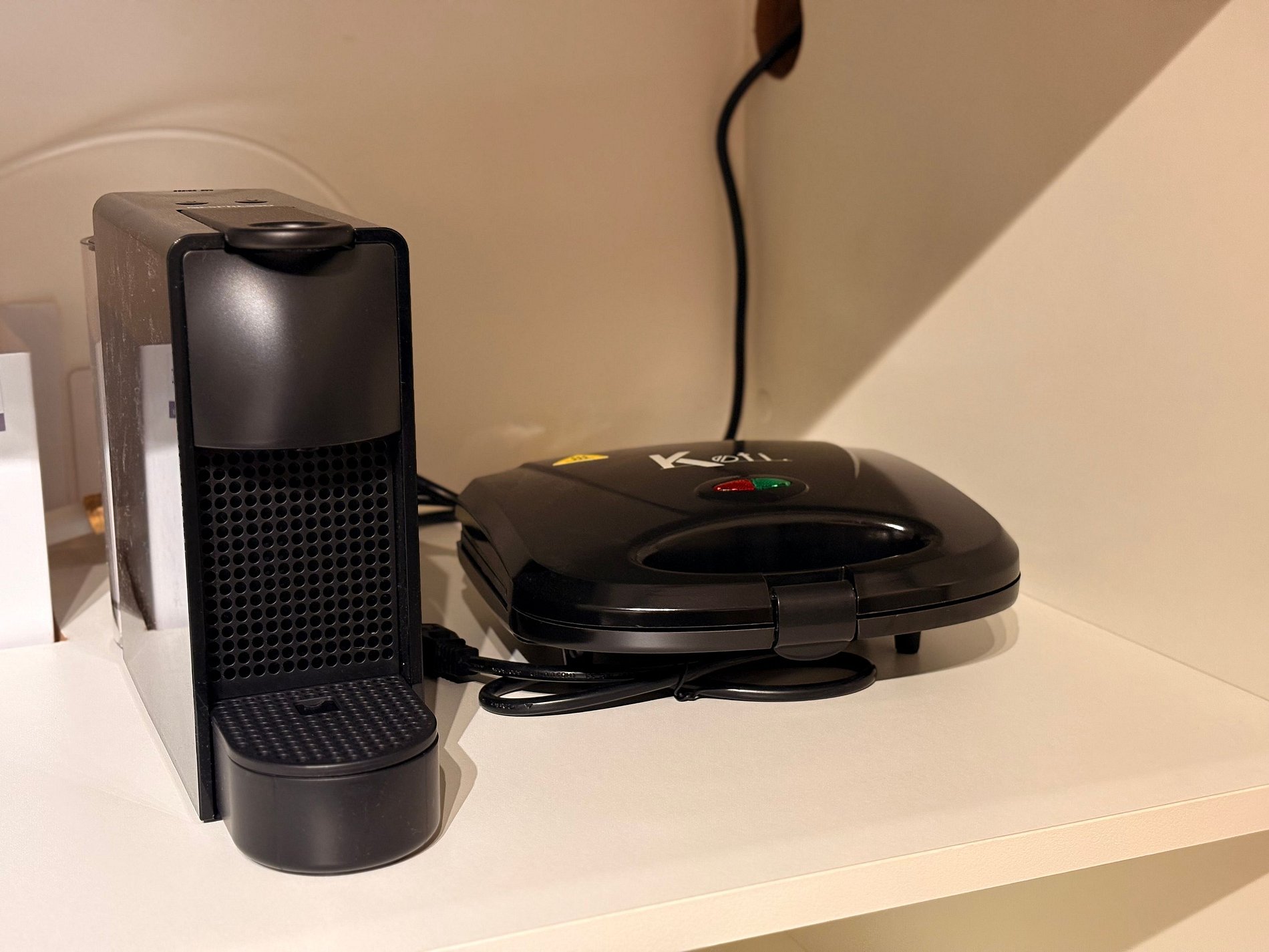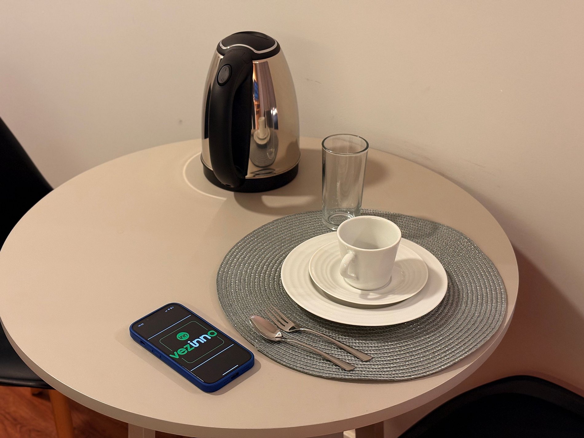 A cozinha está totalmente equipada com utensílios essenciais, como panelas, talheres, pratos, copos, sanduicheira, cafeteira elétrica, cafeteira nespresso essenza mini, chaleira e cooktop de indução. Tudo o que você precisa para preparar suas refeições com praticidade!