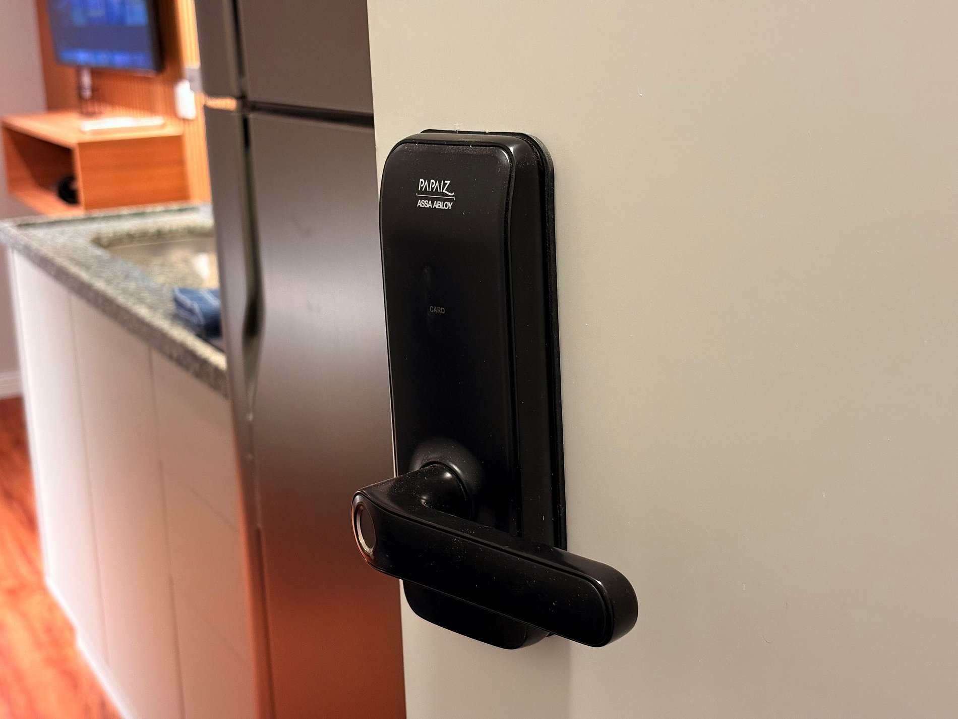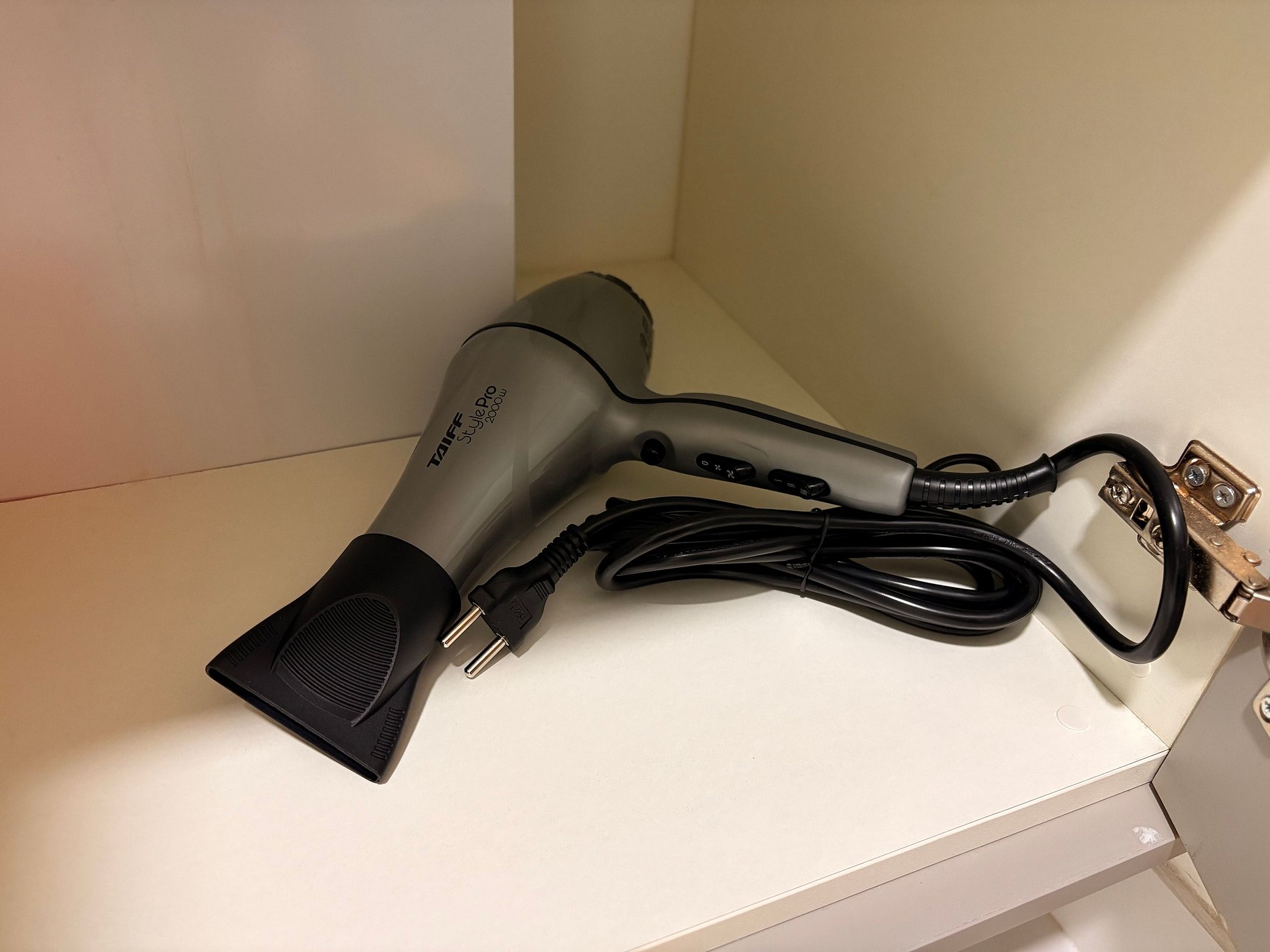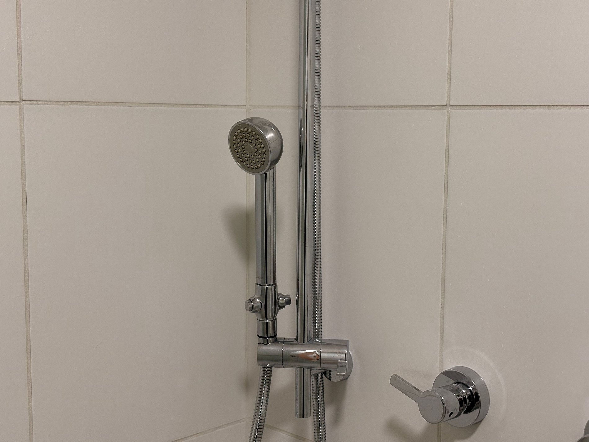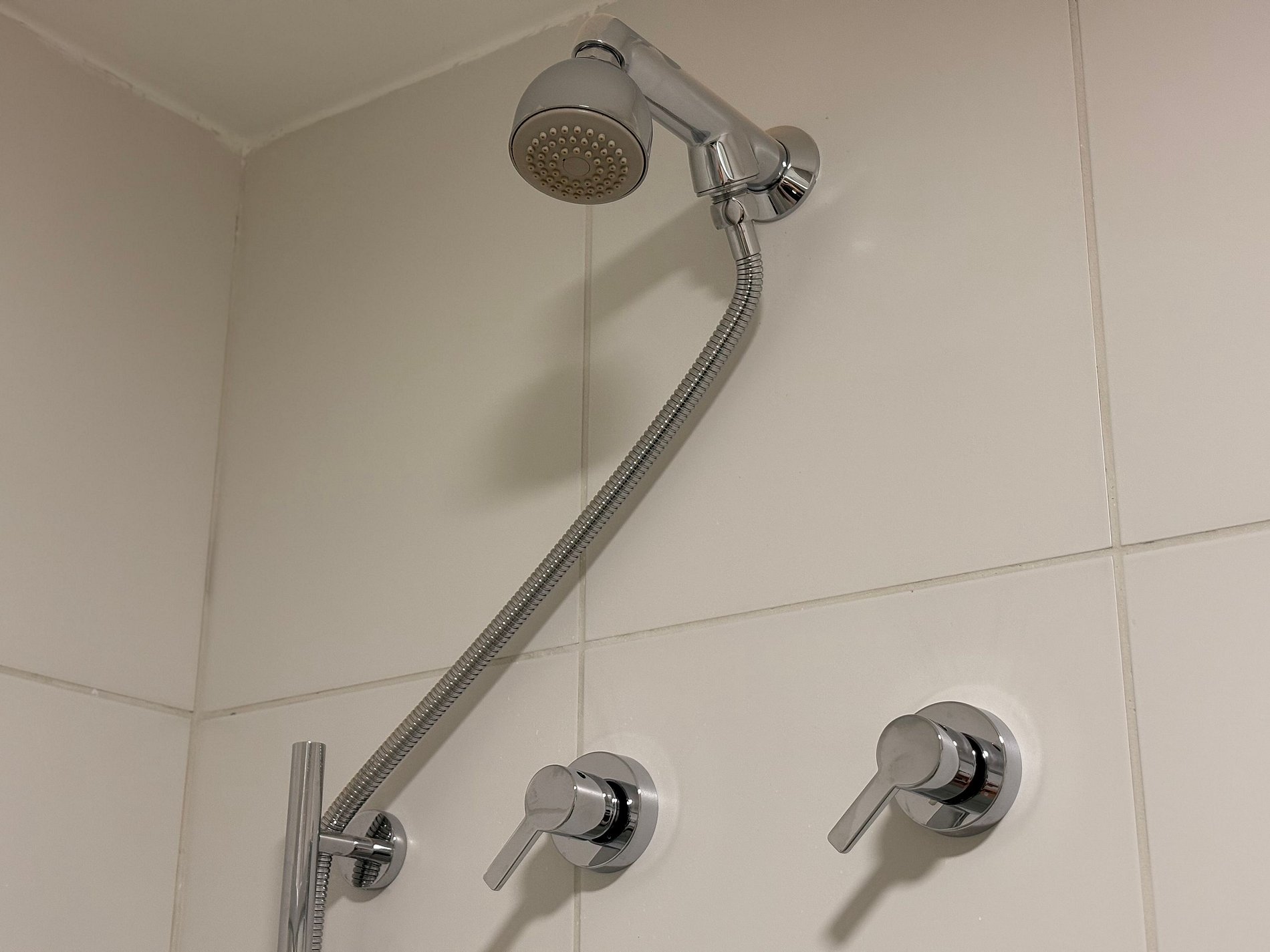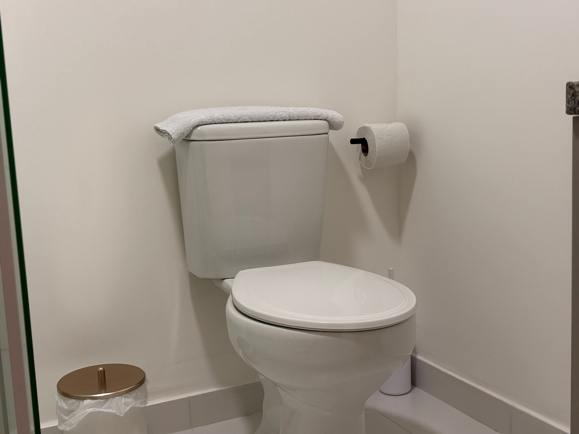 O banheiro é amplo e bem espaçoso. Para maior conveniência durante a estadia, o apartamento também oferece secador de cabelo e ferro de passar roupas.