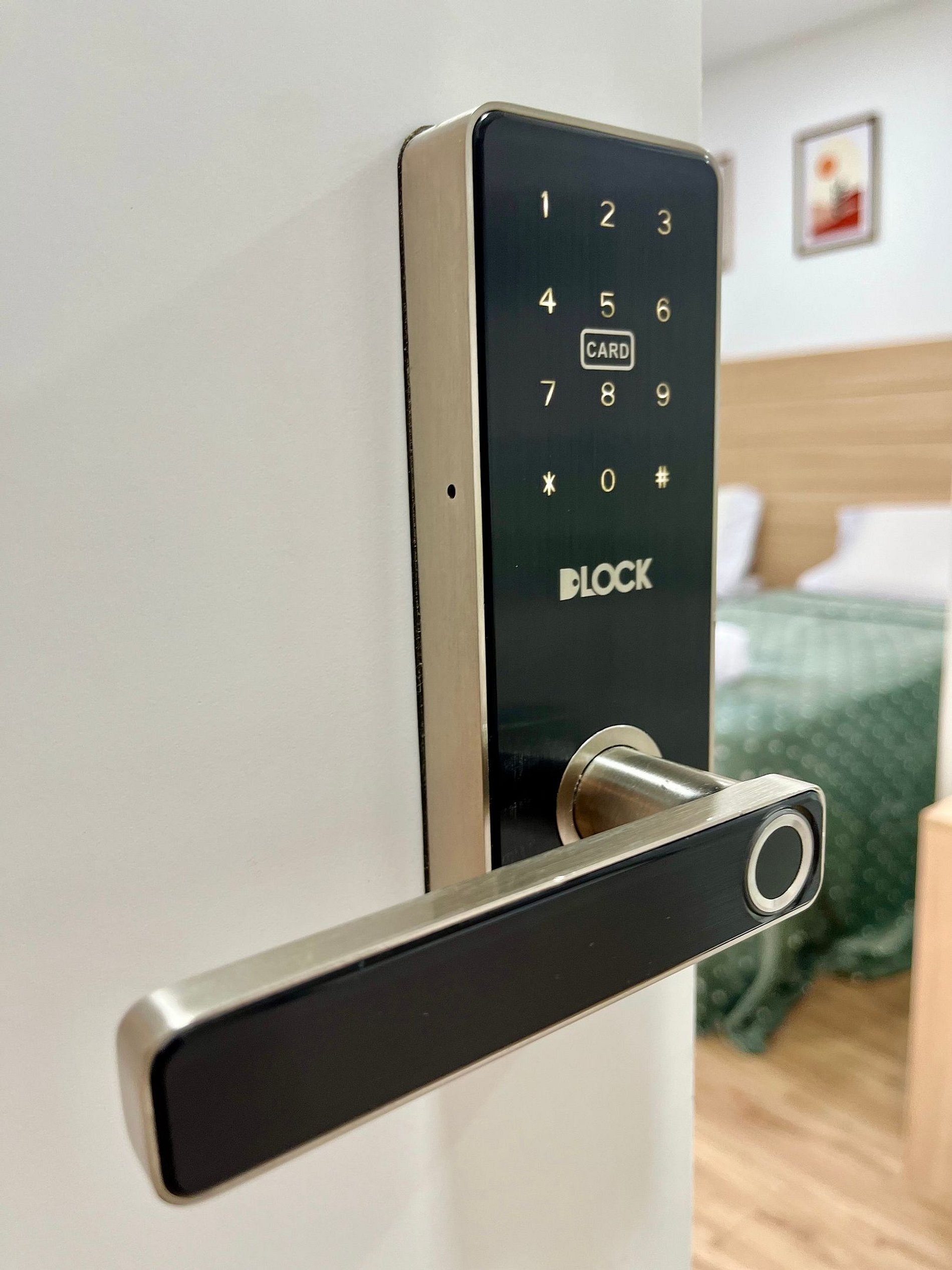 O acesso ao apartamento é feito de forma prática e segura através de uma fechadura inteligente.