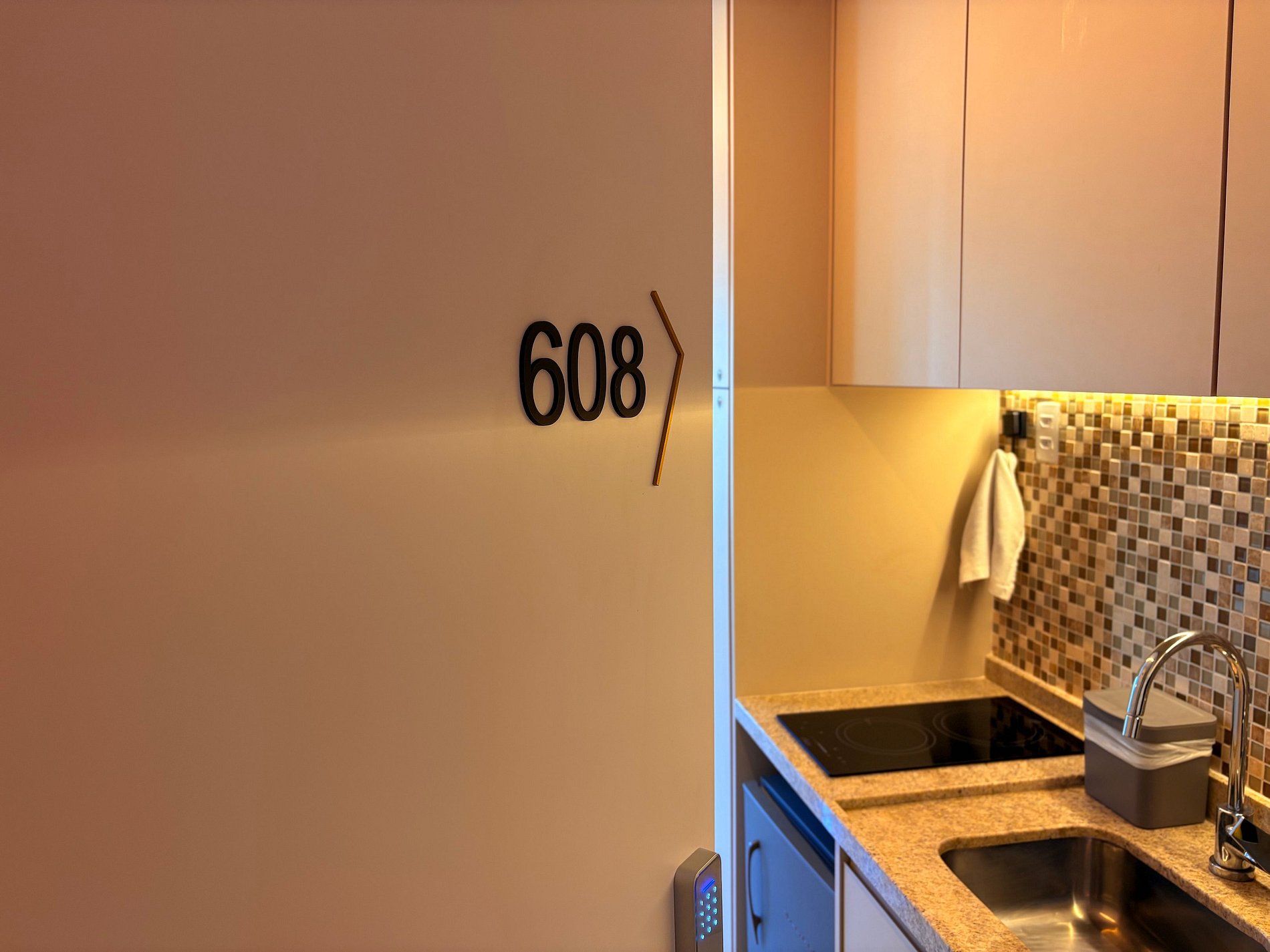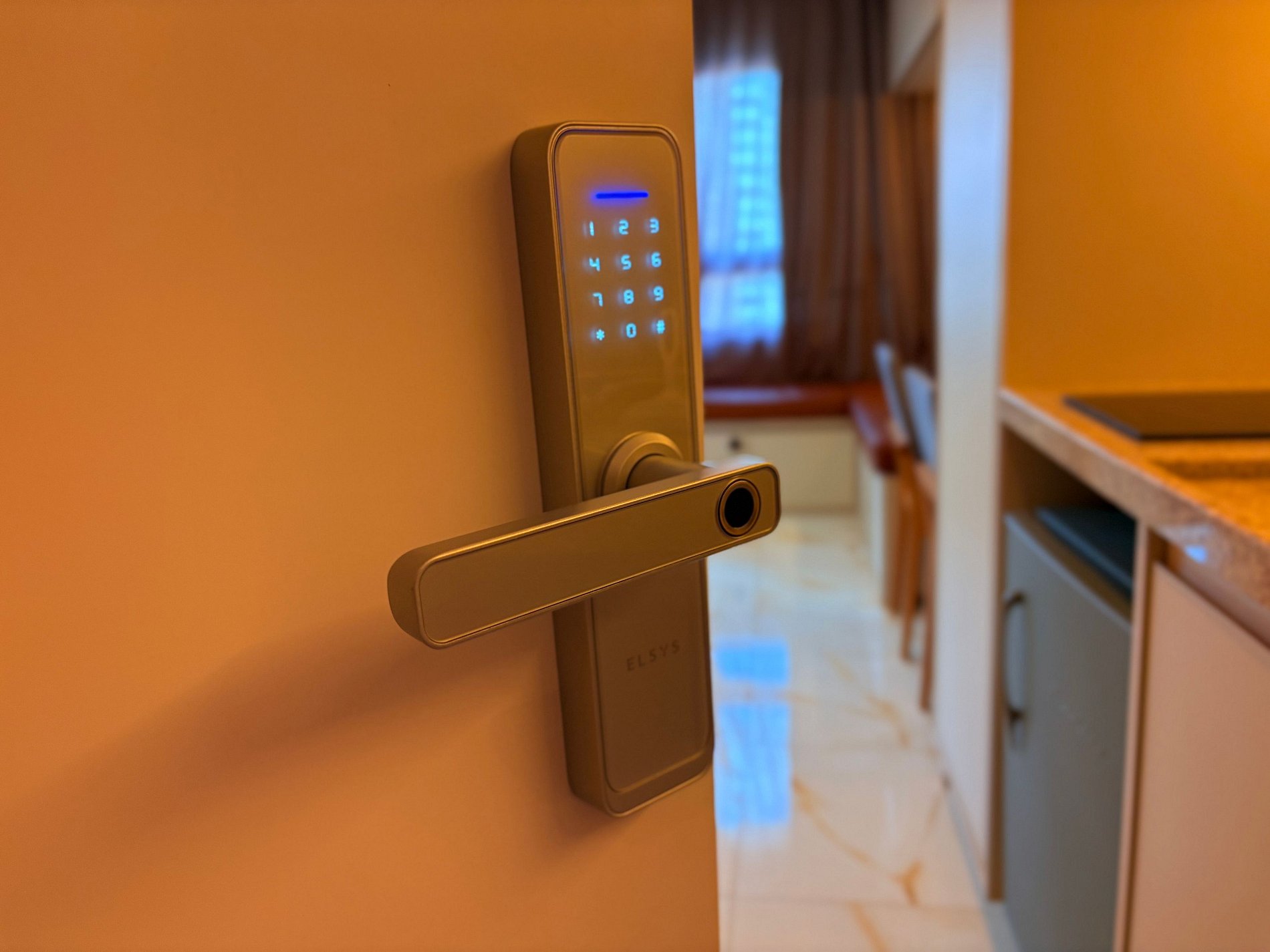 O acesso ao apartamento é feito de forma prática e segura através de uma fechadura inteligente.