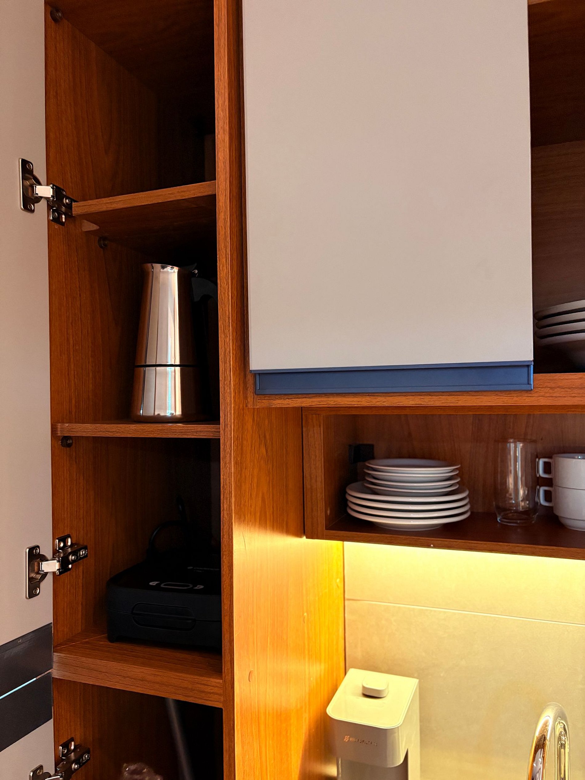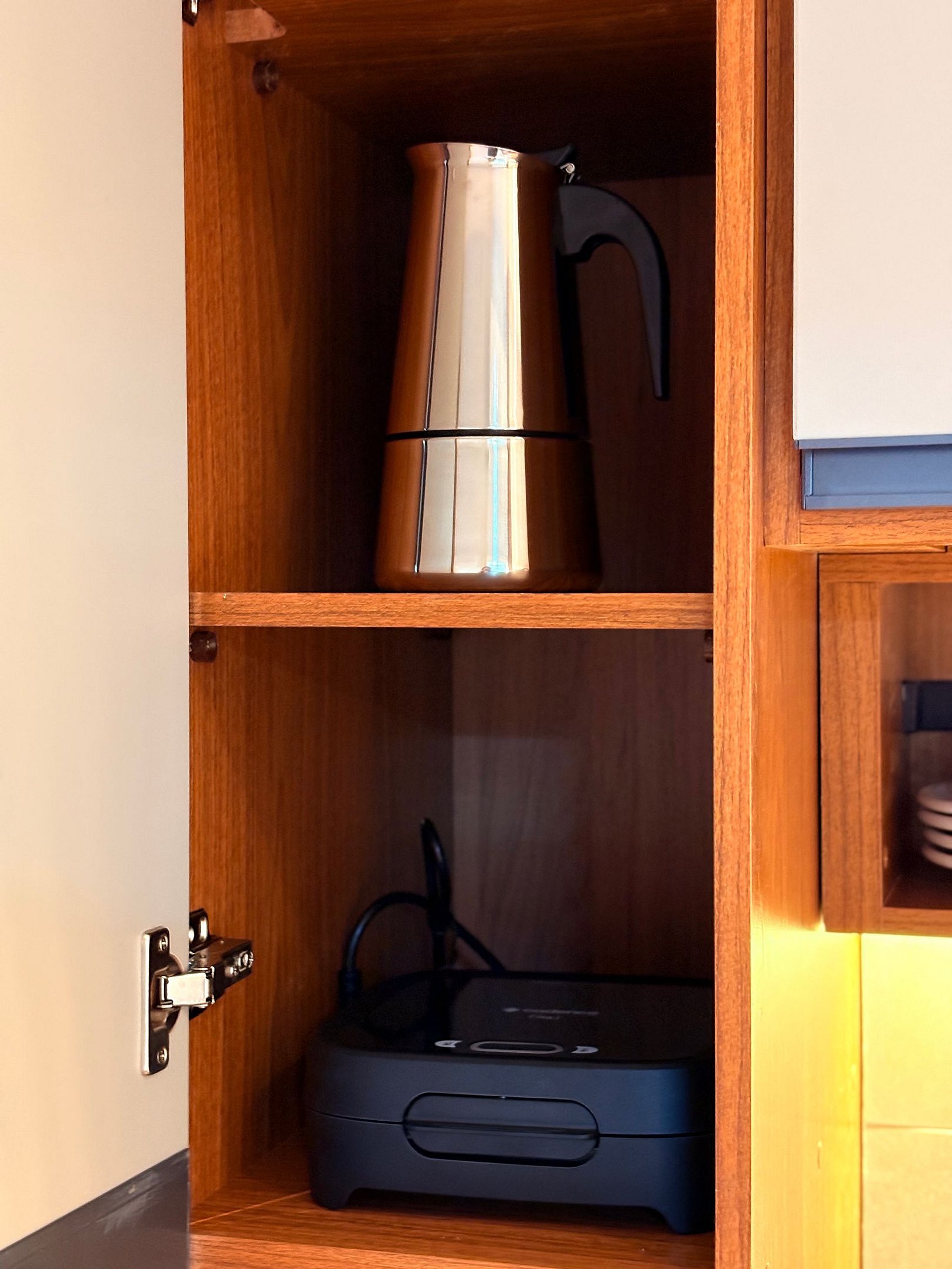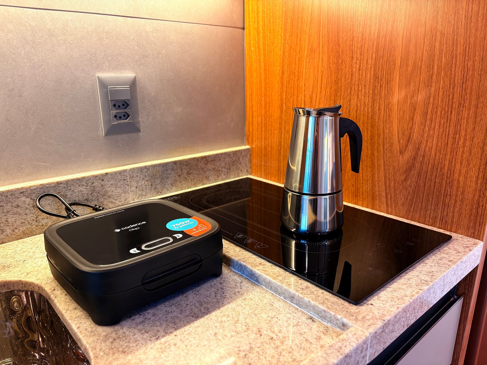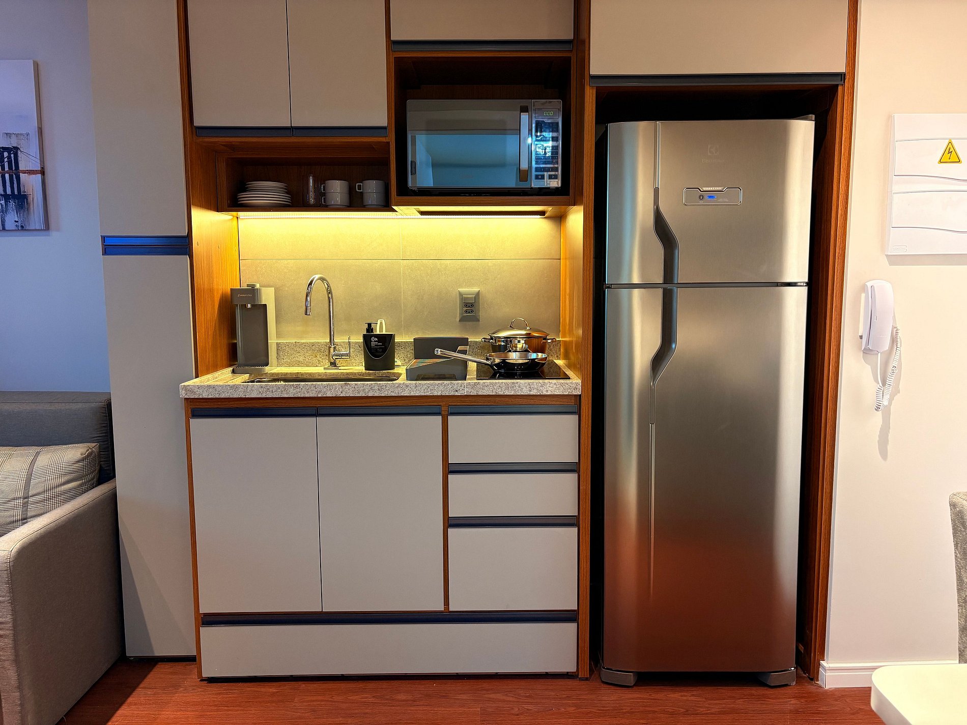 A cozinha está totalmente equipada com utensílios para refeições básicas, como panelas, talheres, pratos, copos, sanduicheira, chaleira e cooktop de indução. Tudo o que você precisa para preparar suas refeições com praticidade!