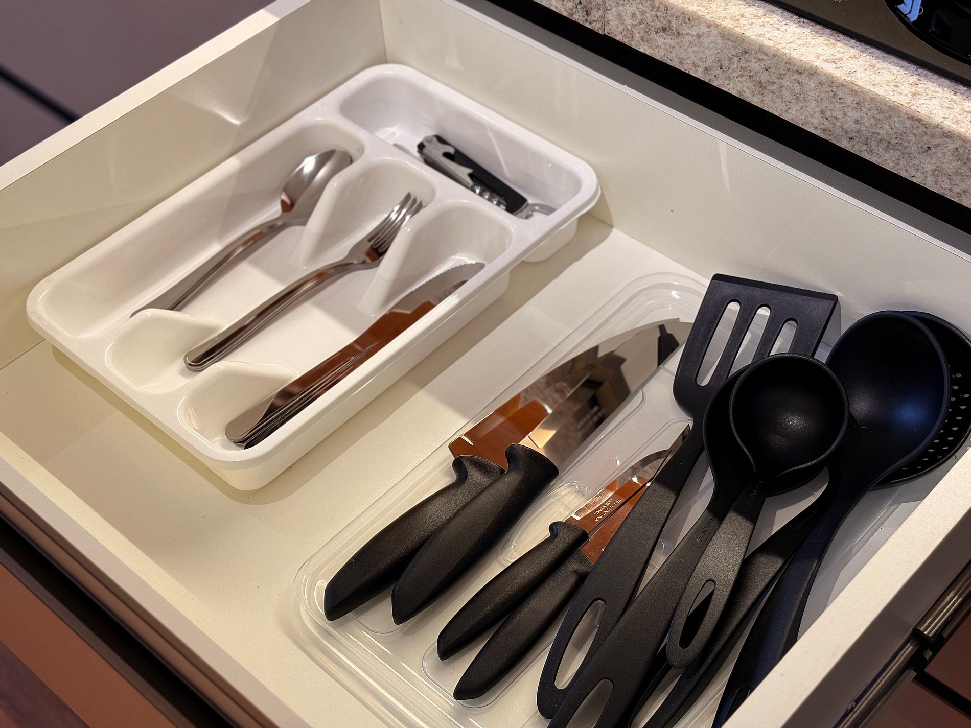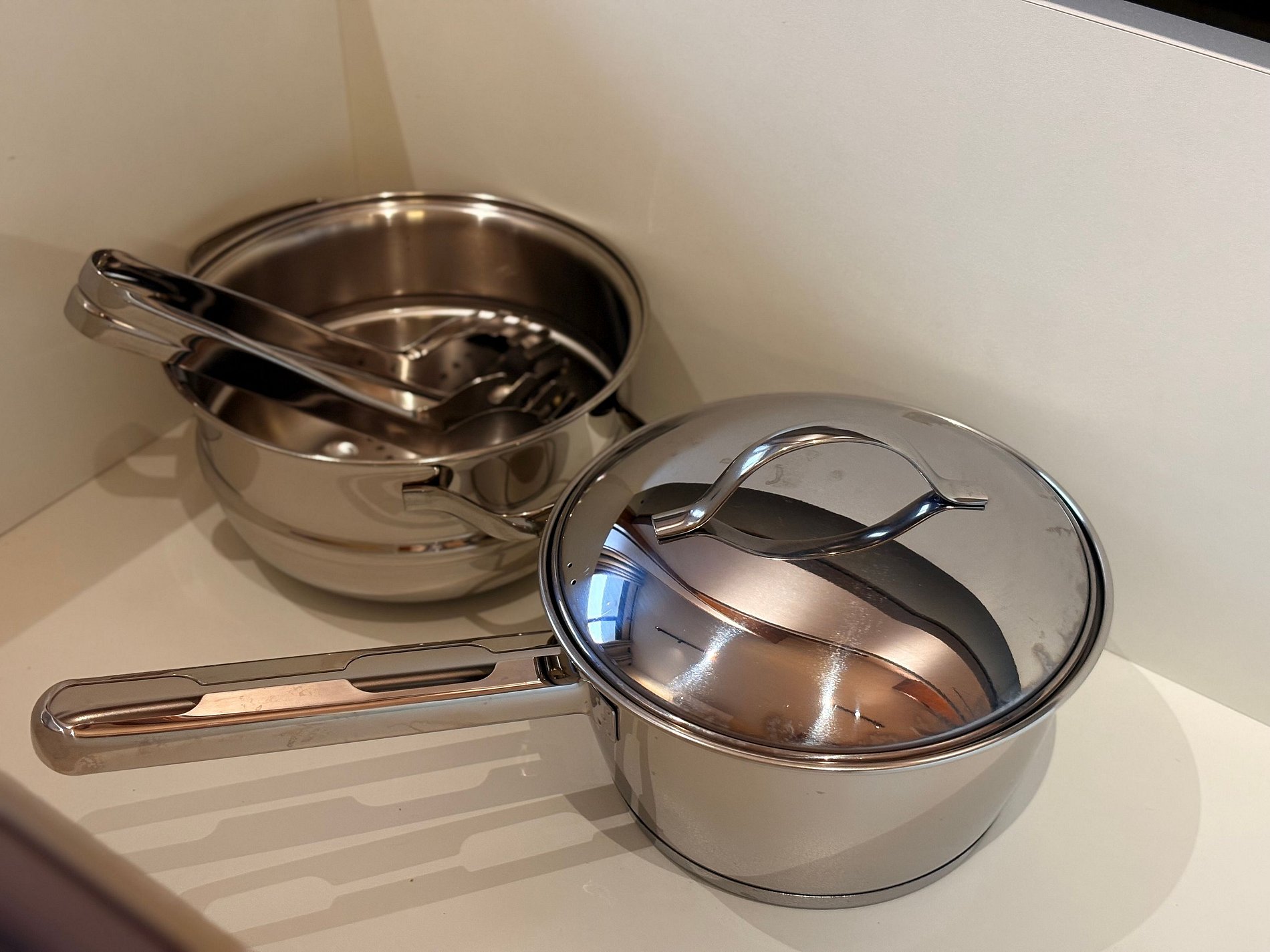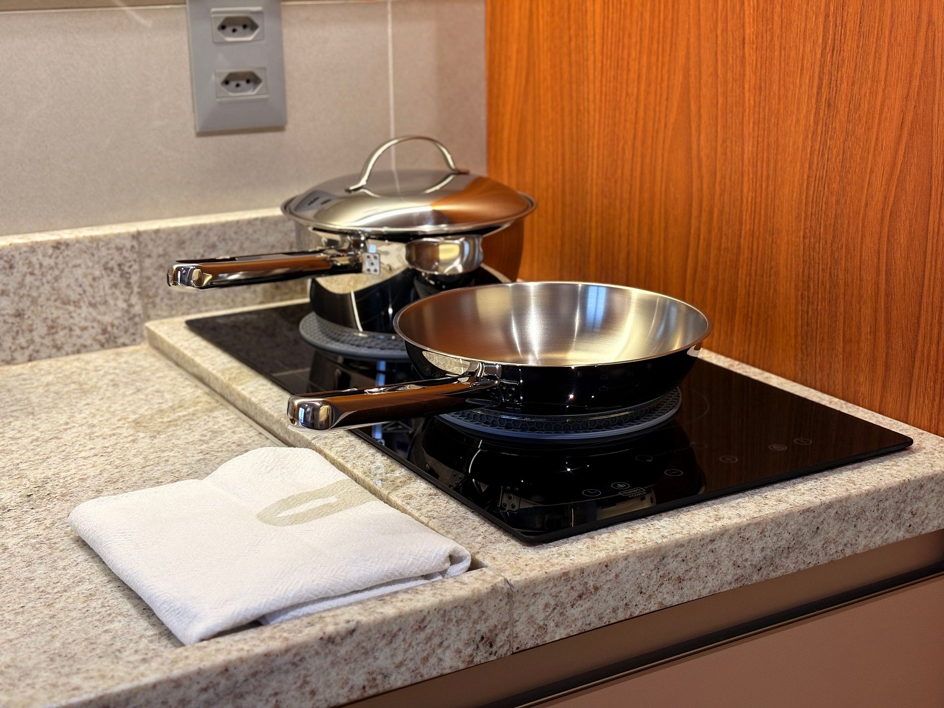A cozinha está totalmente equipada com utensílios essenciais, como panelas, talheres, pratos, copos, sanduicheira, chaleira e cooktop de indução. Tudo o que você precisa para preparar suas refeições com praticidade!